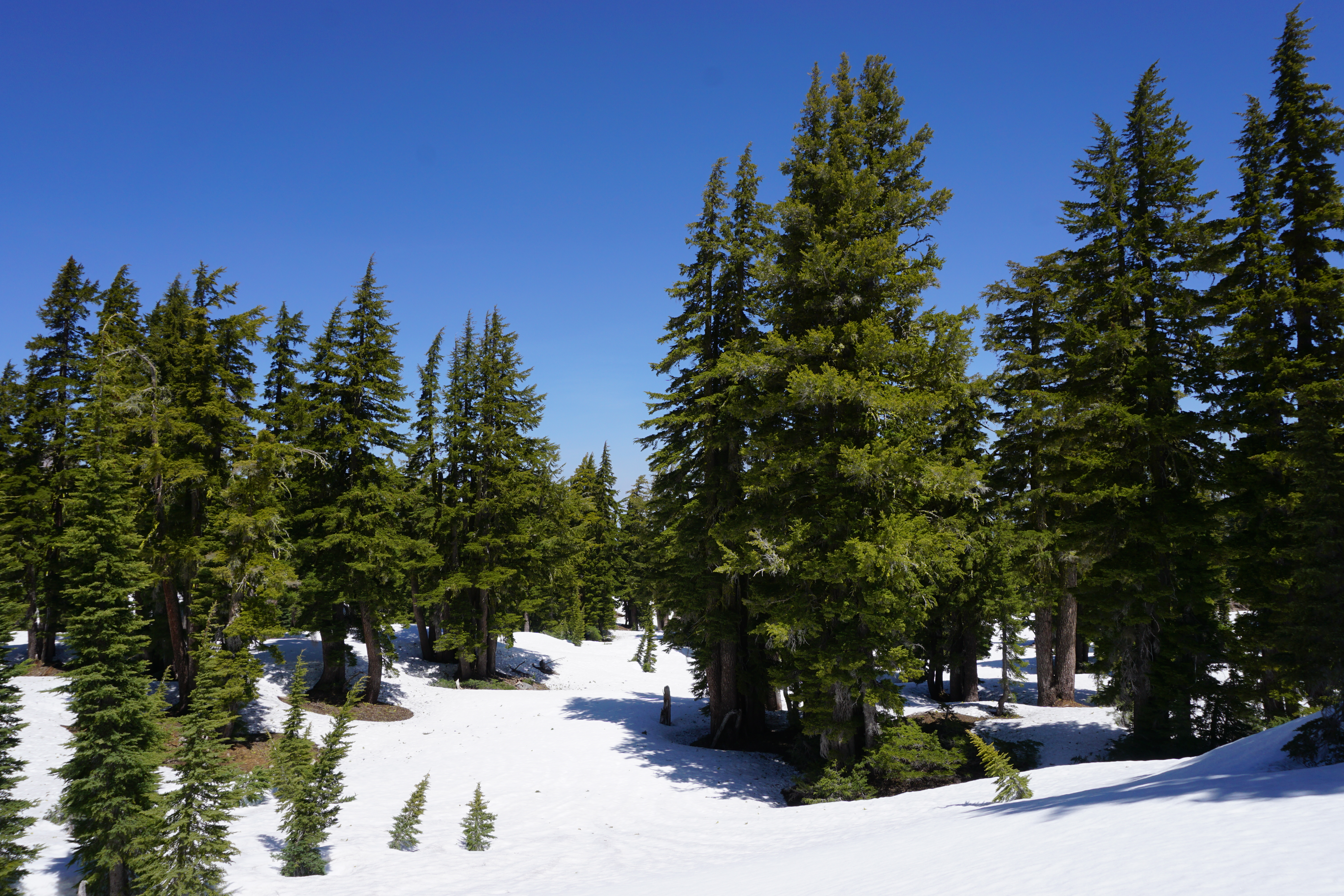 So around a mile and a quarter into the trek, two things happened: First, as this is a hike where you hike down into a meadow, I fell below snow level, so I was able to strap Thor and Ragnarok to my trusty daypack, Blueberry, and walk around au natural. Second, I became hopelessly lost. I couldn’t find any more trail markers for the life of me, and I started to panic because I thought that a black bear was going to come out of hibernation and try to eat me. However, I was unwilling to turn back, so I just kept heading in the general direction where I felt that the meadow was located until…