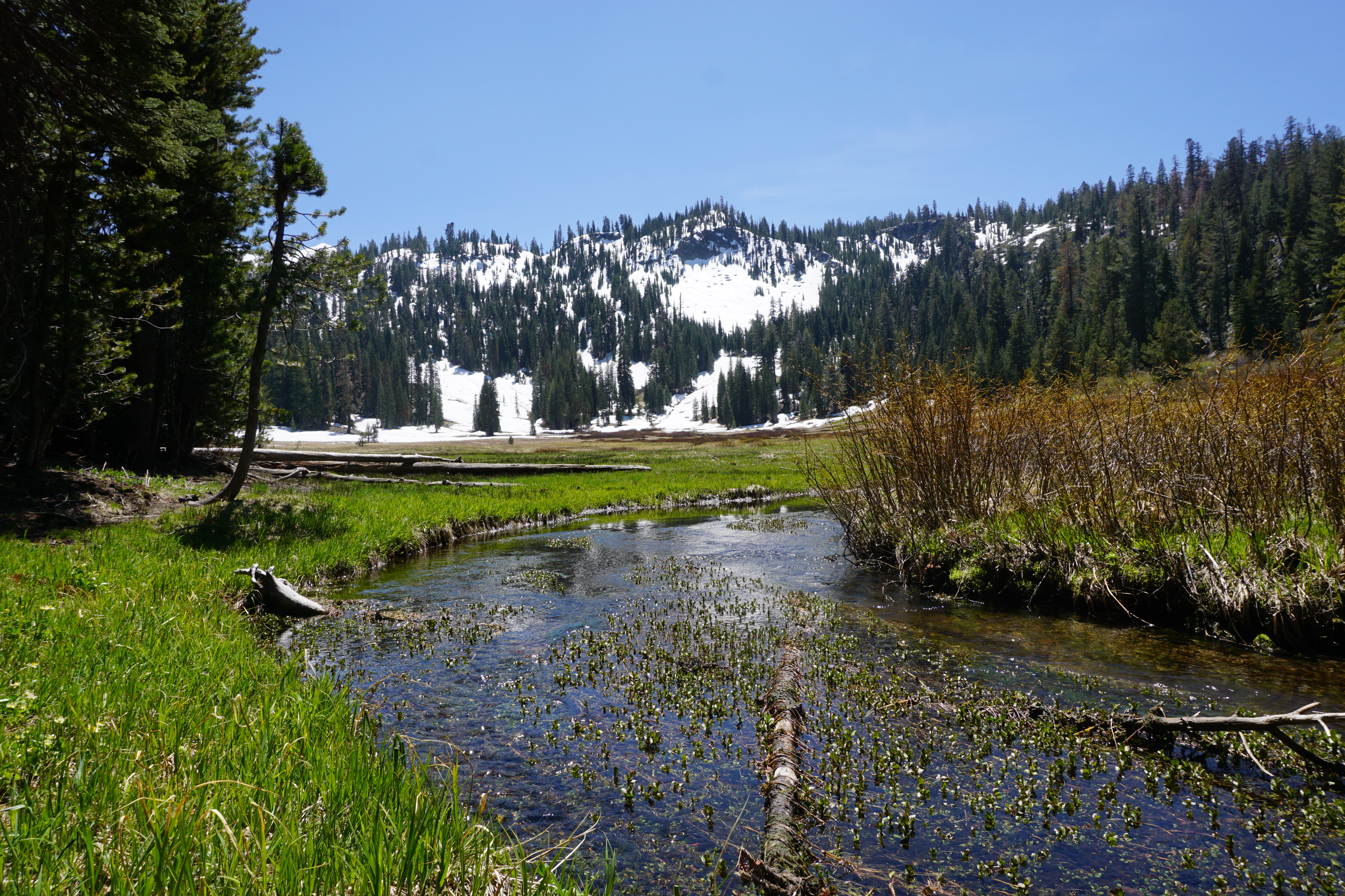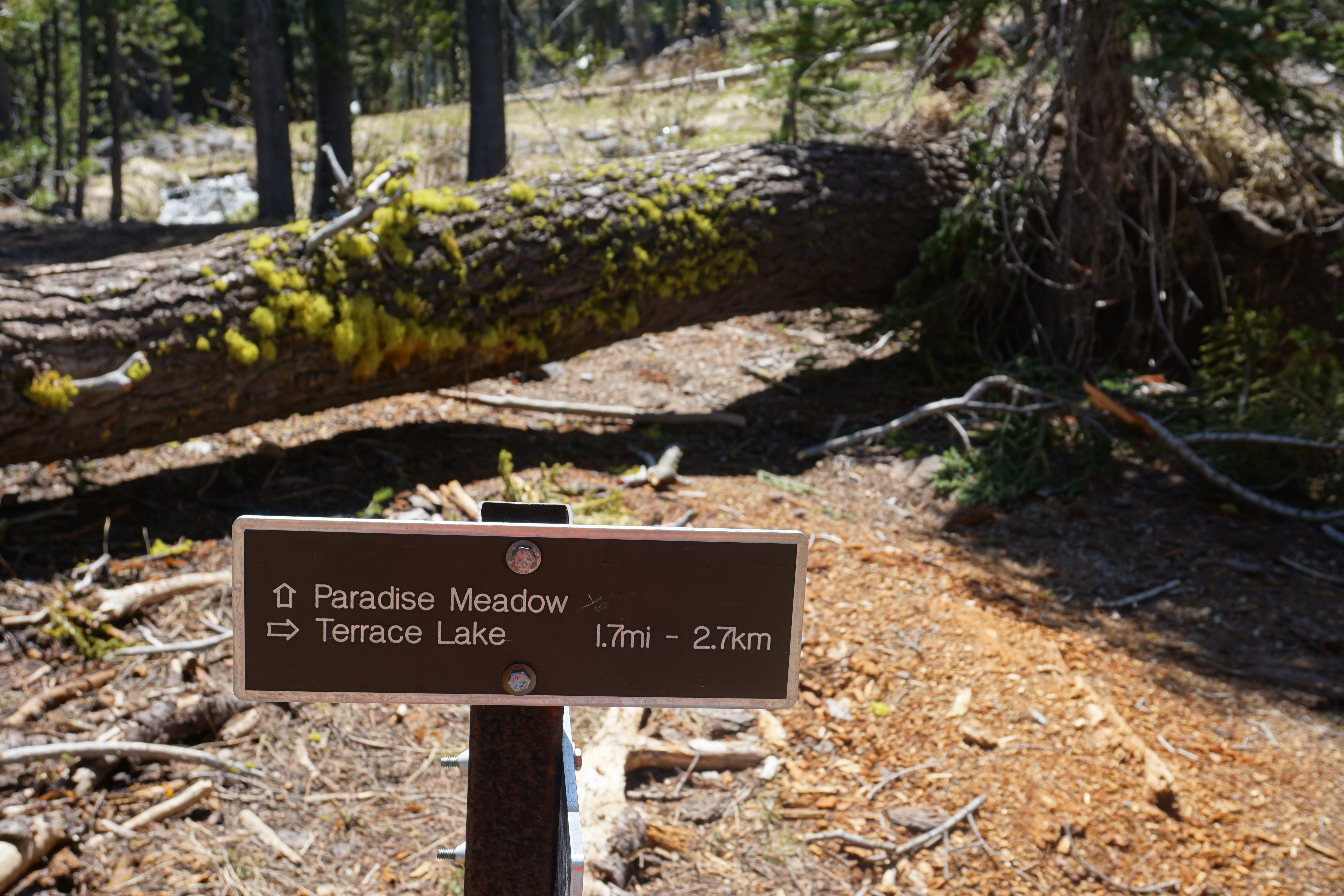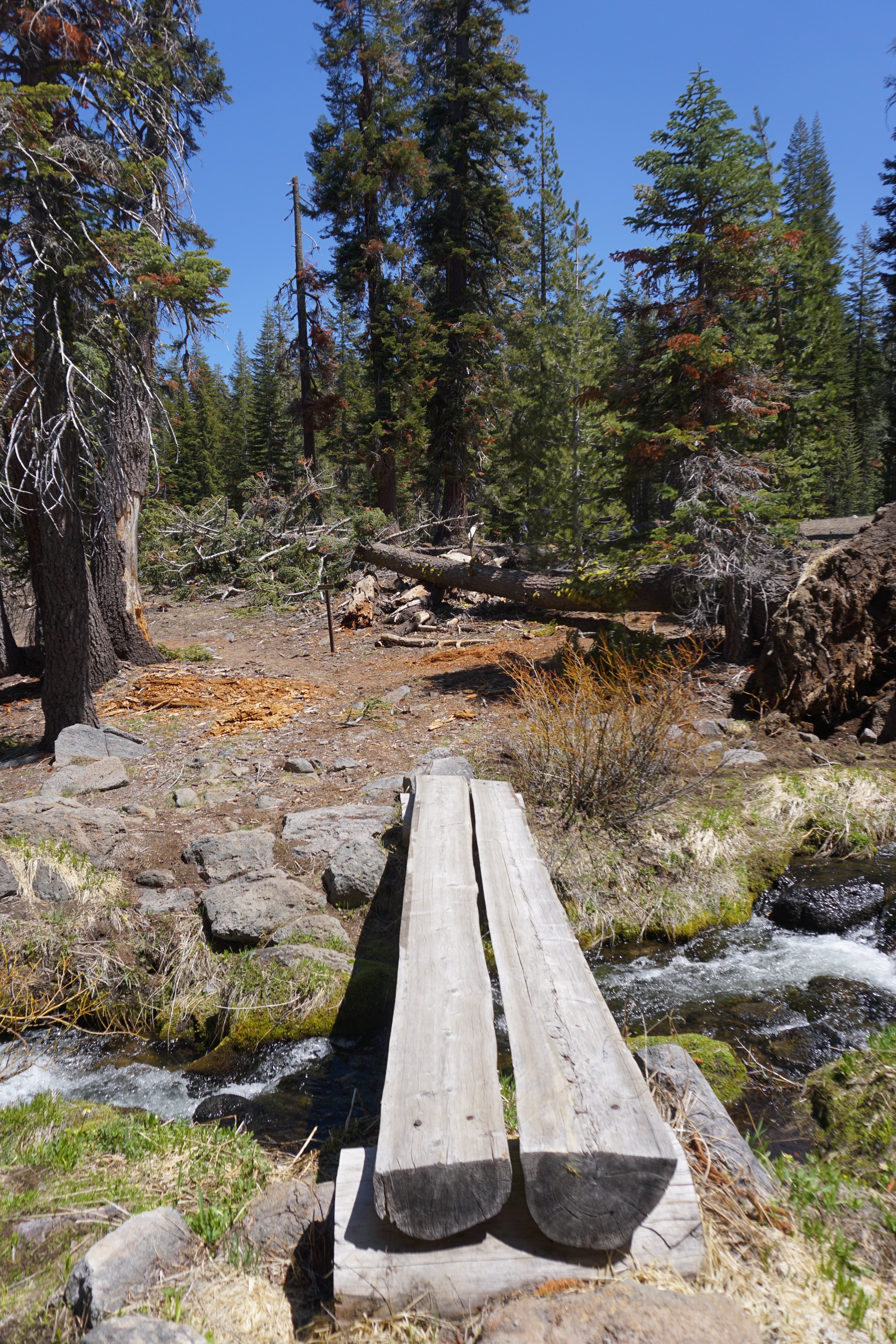 I stumbled upon the meadow! Now, with Mount Lassen behind me, and Paradise Meadow in front of me, I was able to make a bearing and discern the general direction where I knew the trail must be located. I headed in that direction, and it wasn’t long until I found the manmade bridge leading me into Paradise Meadow.