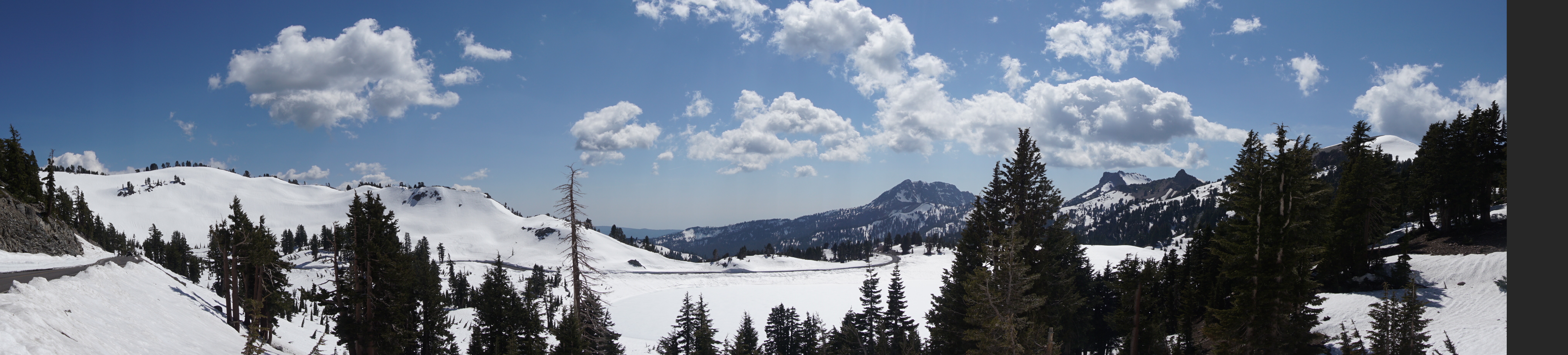 A few panoramas showing the road snaking its way through the snow.