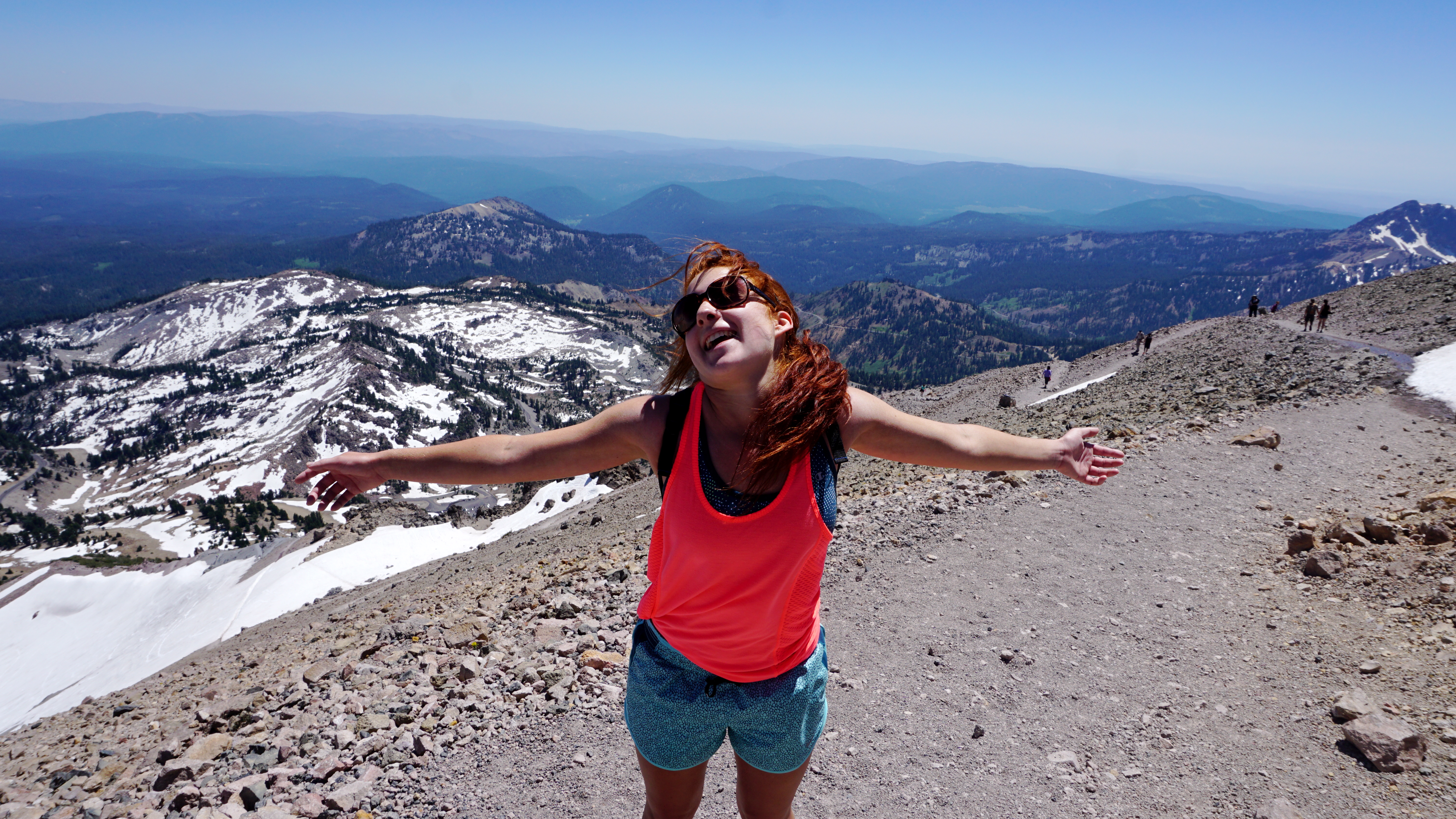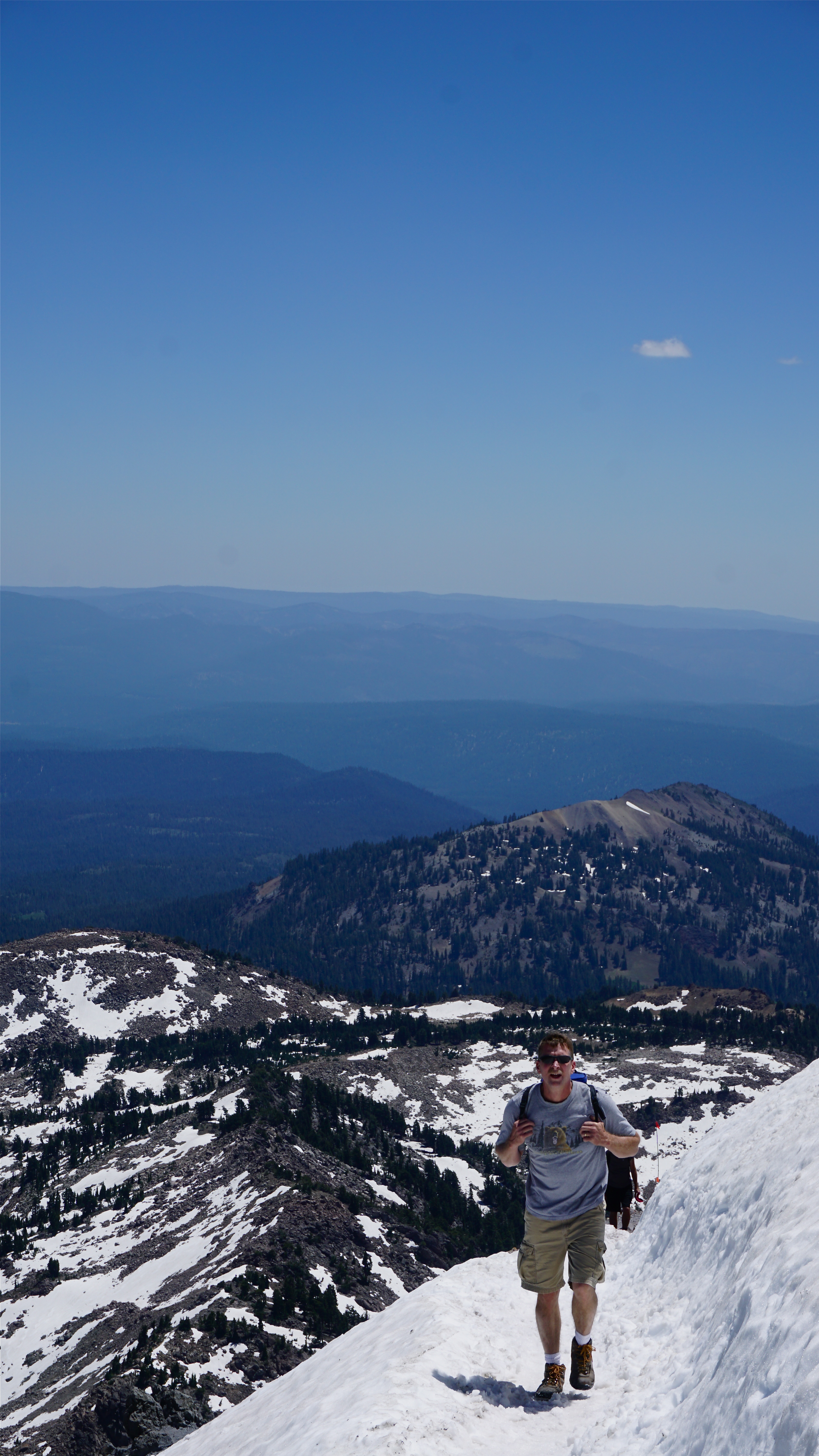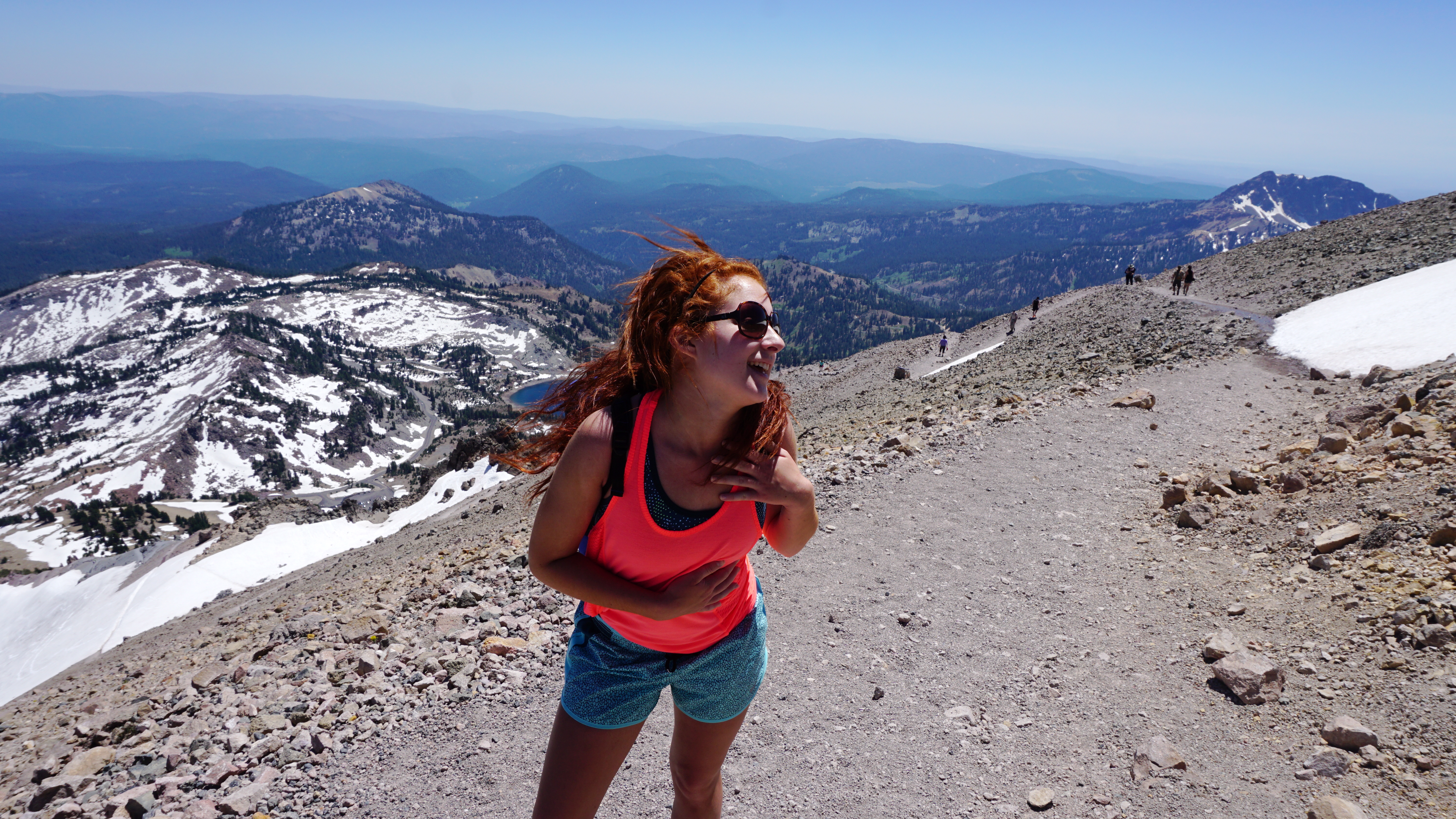 Once my family all made it up the mountain, we ate lunch together (complete with wine) and took a quick family photo. Then, my dad and I continued onward, to the very top of Lassen – the highest point on the entire mountain. Getting there required a bit of a scramble and rock climb, and with the winds gusting at high speed, it actually was a bit dangerous. But there’s no feeling quite like standing on the highest point of a huge peak…or in this case, a huge volcano. And across the Lassen maw, we could see an even larger volcano; a place I would like to summit in the near future: Mount Shasta.