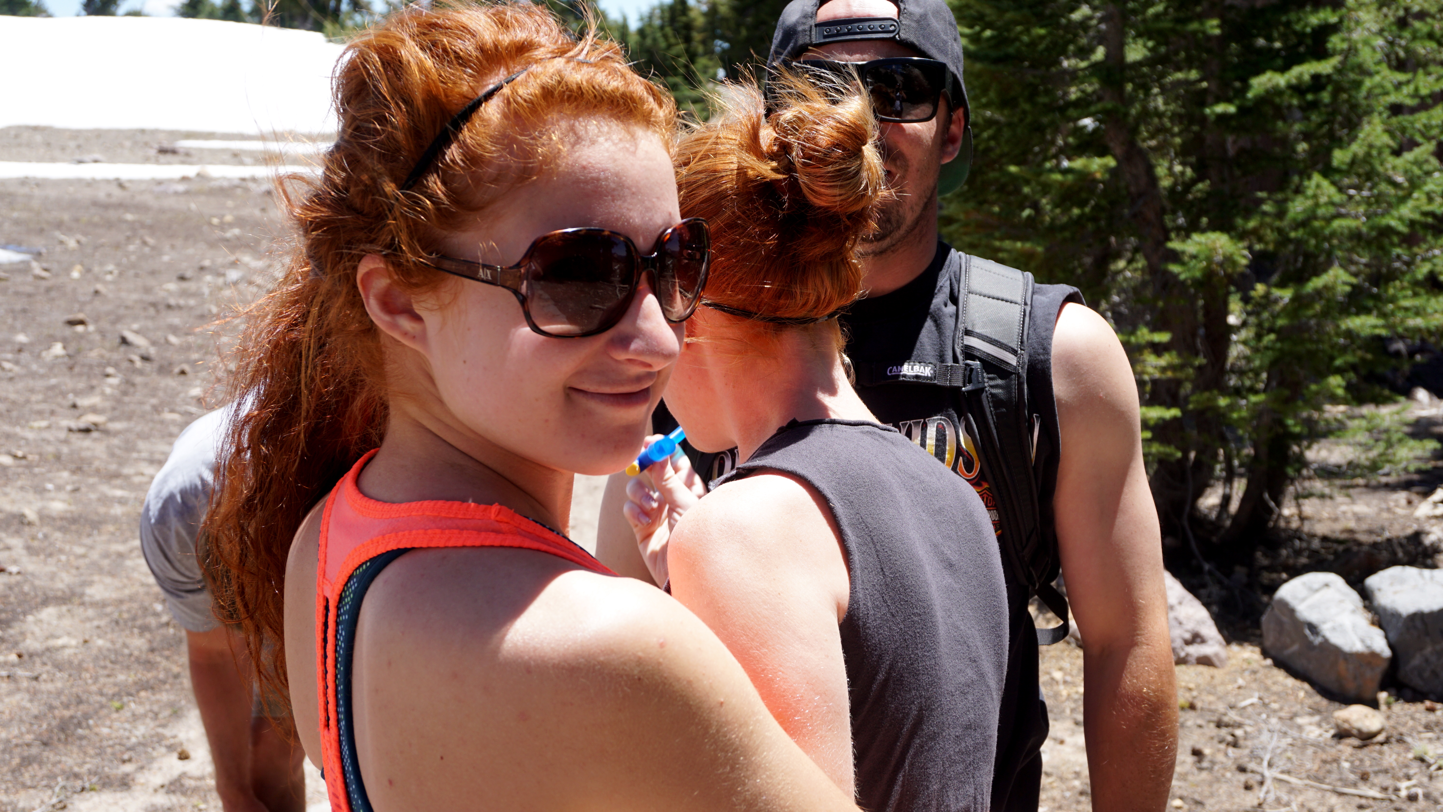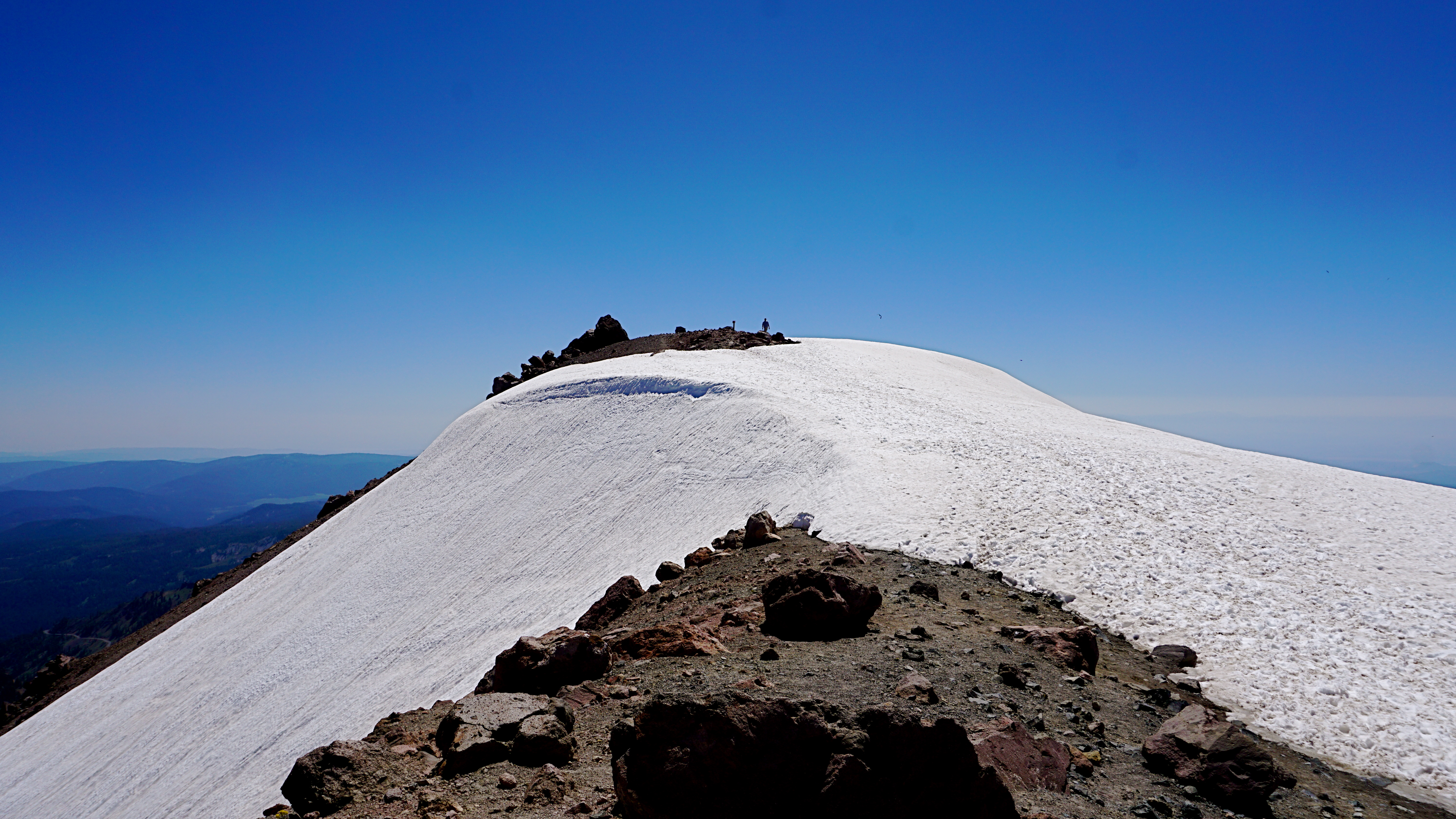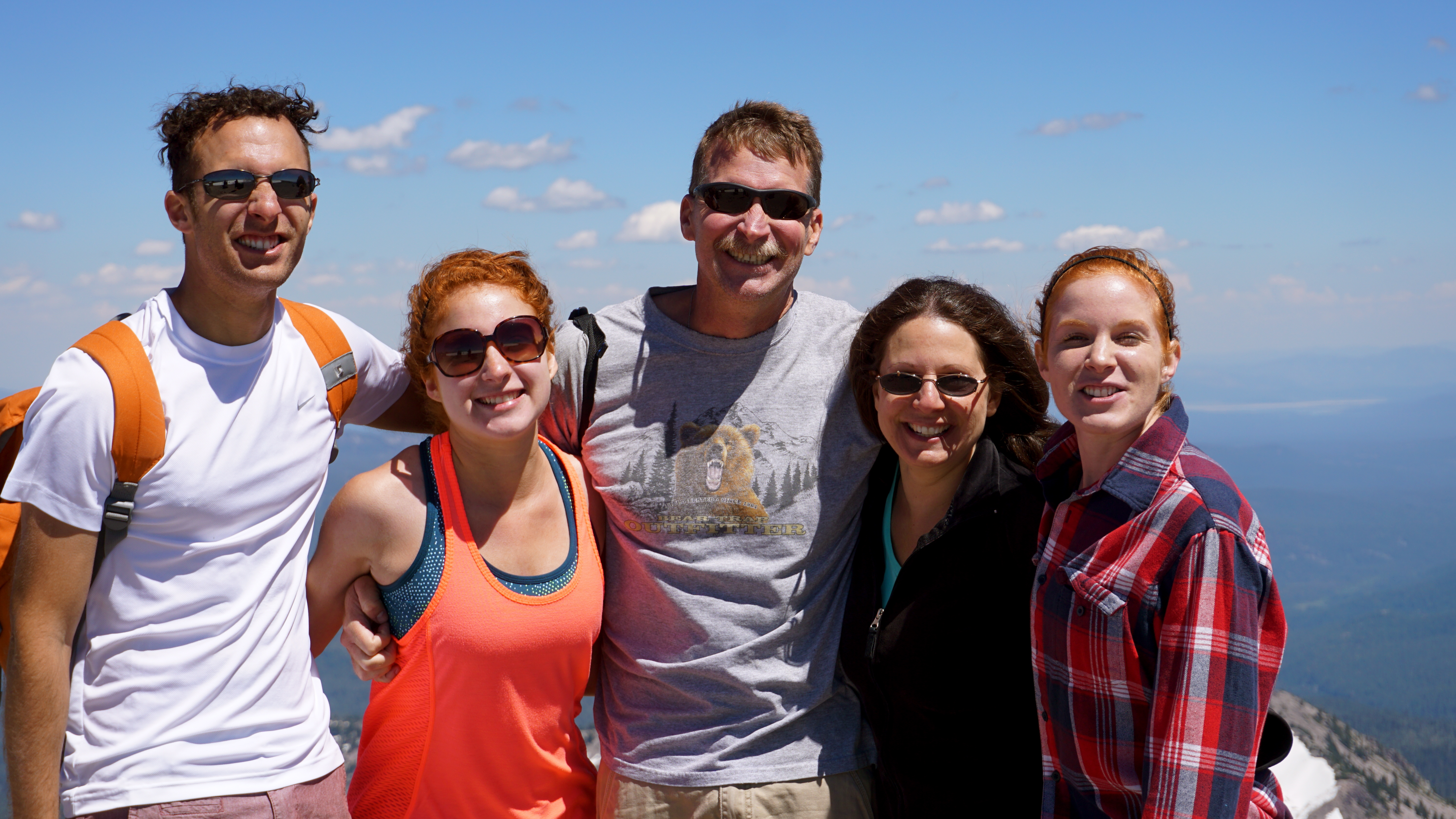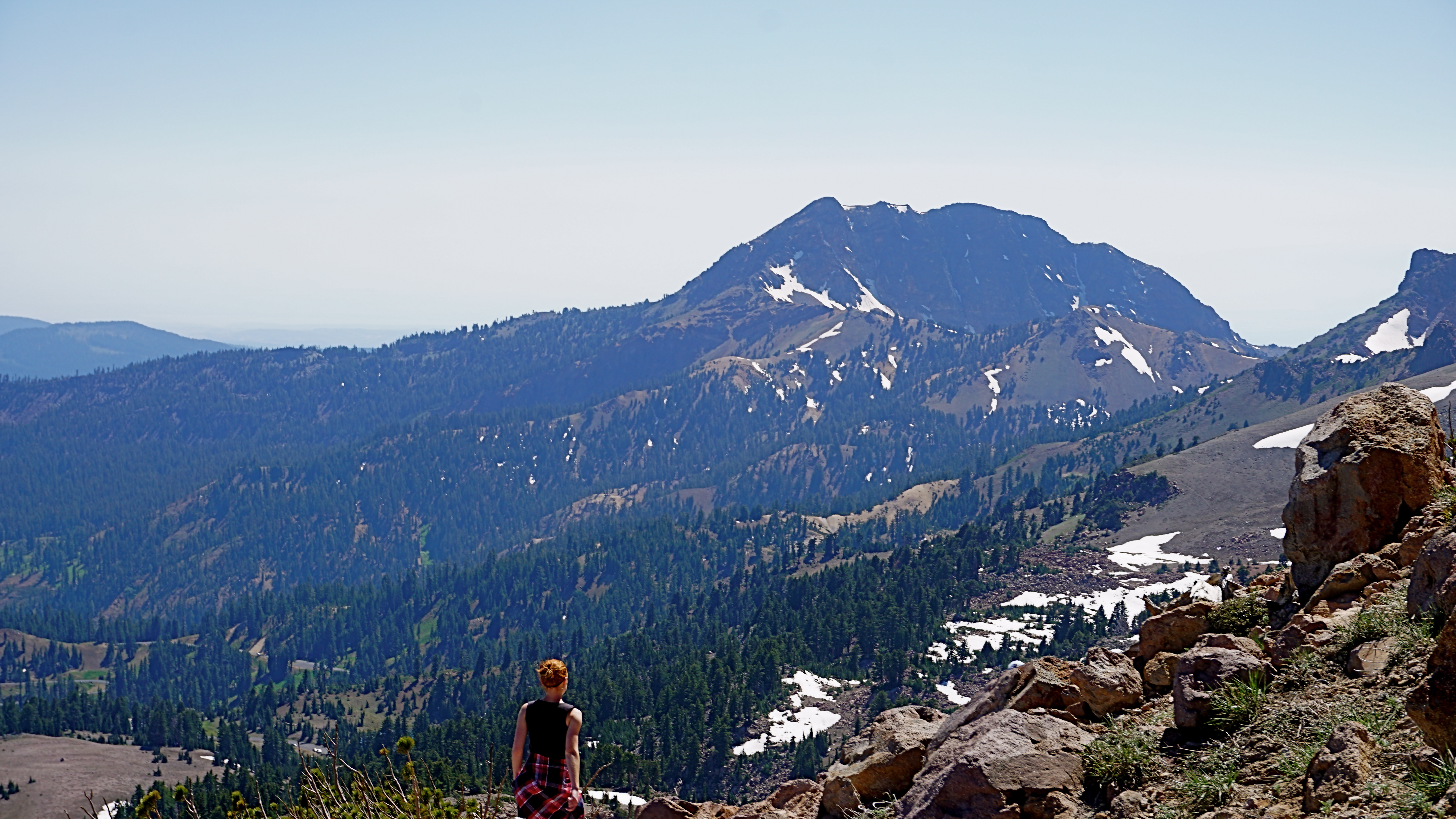 Once my family all made it up the mountain, we ate lunch together (complete with wine) and took a quick family photo. Then, my dad and I continued onward, to the very top of Lassen – the highest point on the entire mountain. Getting there required a bit of a scramble and rock climb, and with the winds gusting at high speed, it actually was a bit dangerous. But there’s no feeling quite like standing on the highest point of a huge peak…or in this case, a huge volcano. And across the Lassen maw, we could see an even larger volcano; a place I would like to summit in the near future: Mount Shasta.
