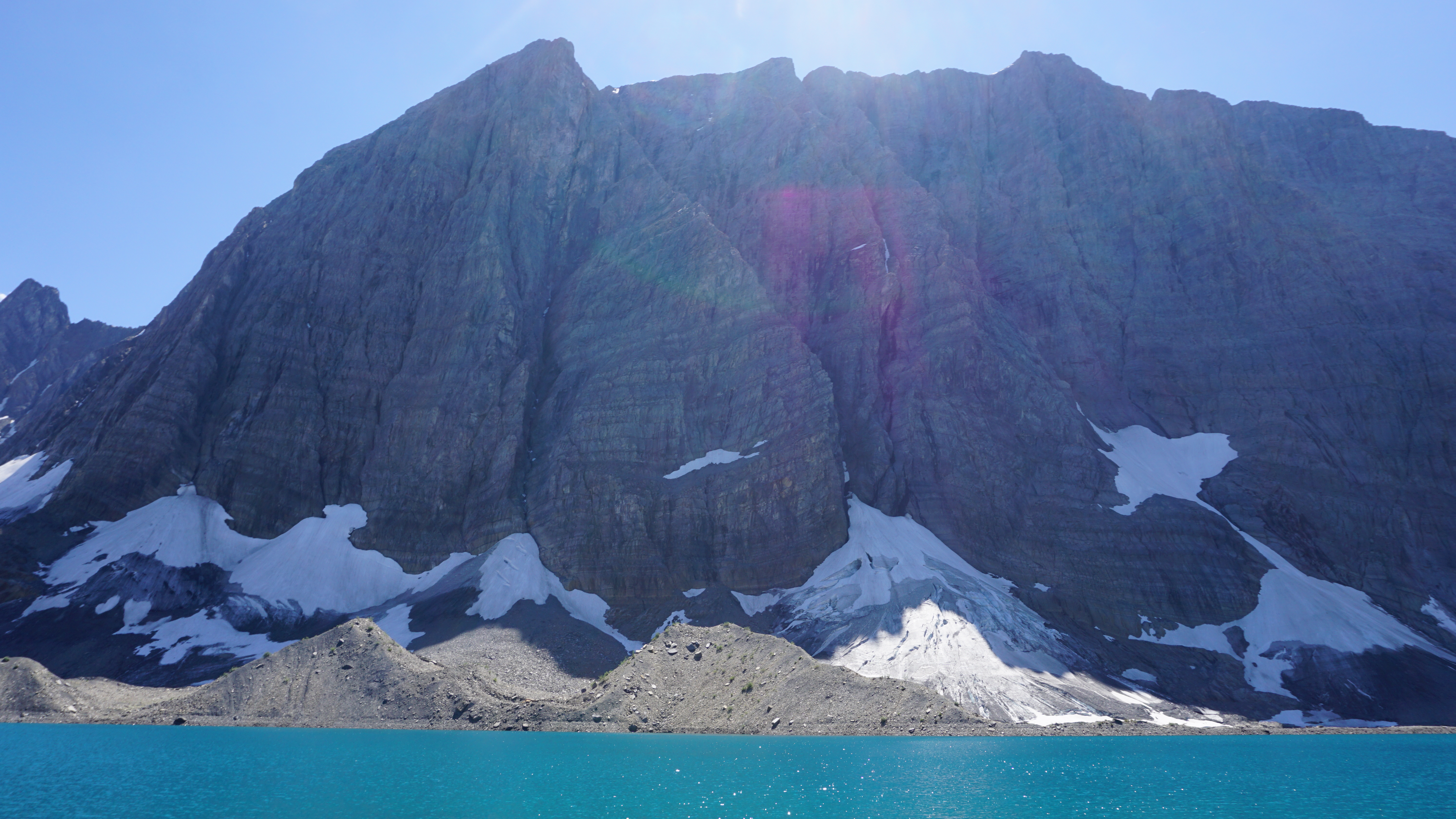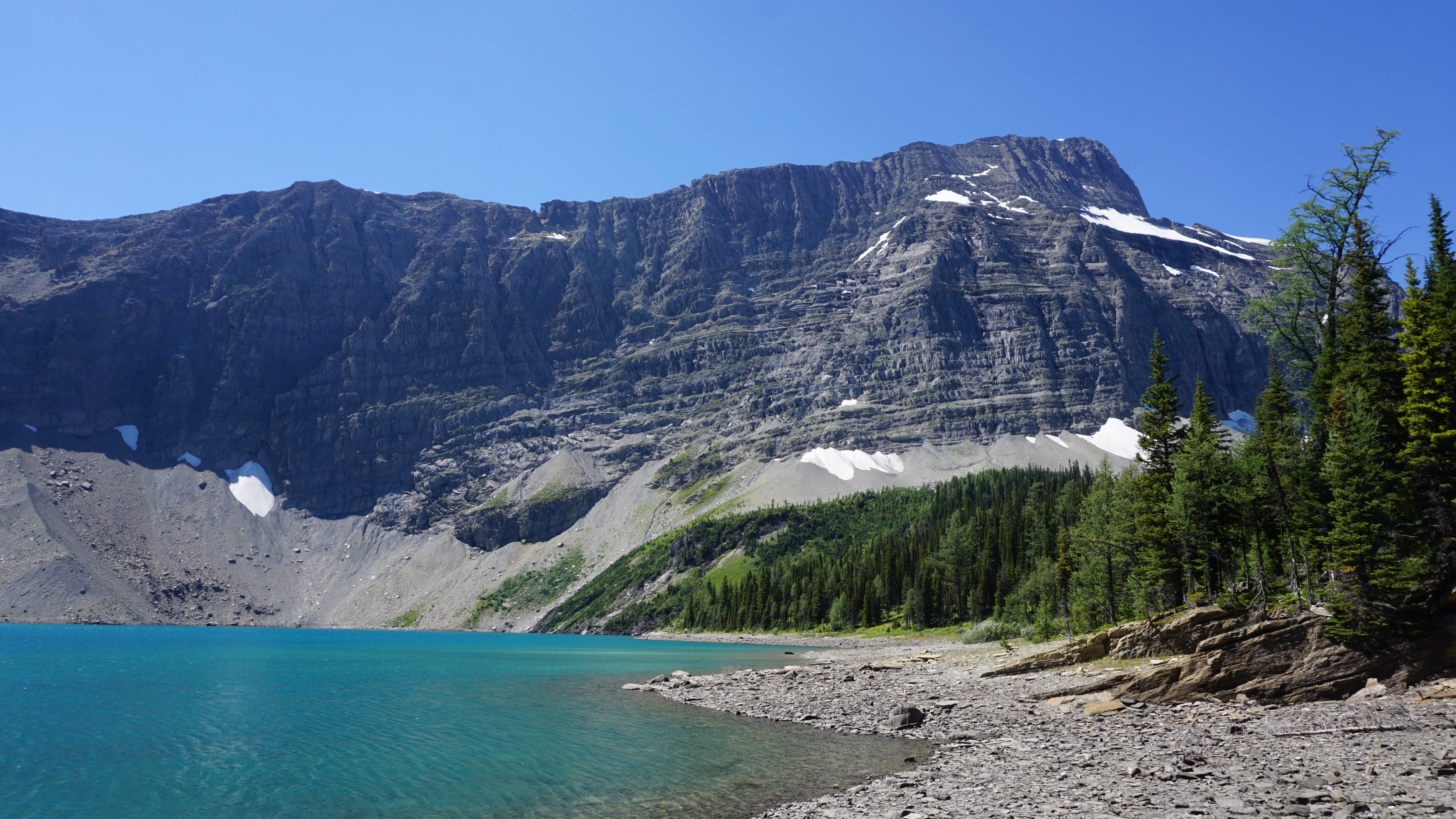 Before I started heading back down the Floe Lake trail, I admired Floe Lake and its Rockwall. The site is famous amongst backpackers in-the-know, but not well populated (I’m guessing as a result of it being difficult to hike into). I guess you could think of the Rockwall as Canada’s answer to El Capitan. Seriously, the thing is HUGE. I couldn’t capture it all in my camera, it was so big.