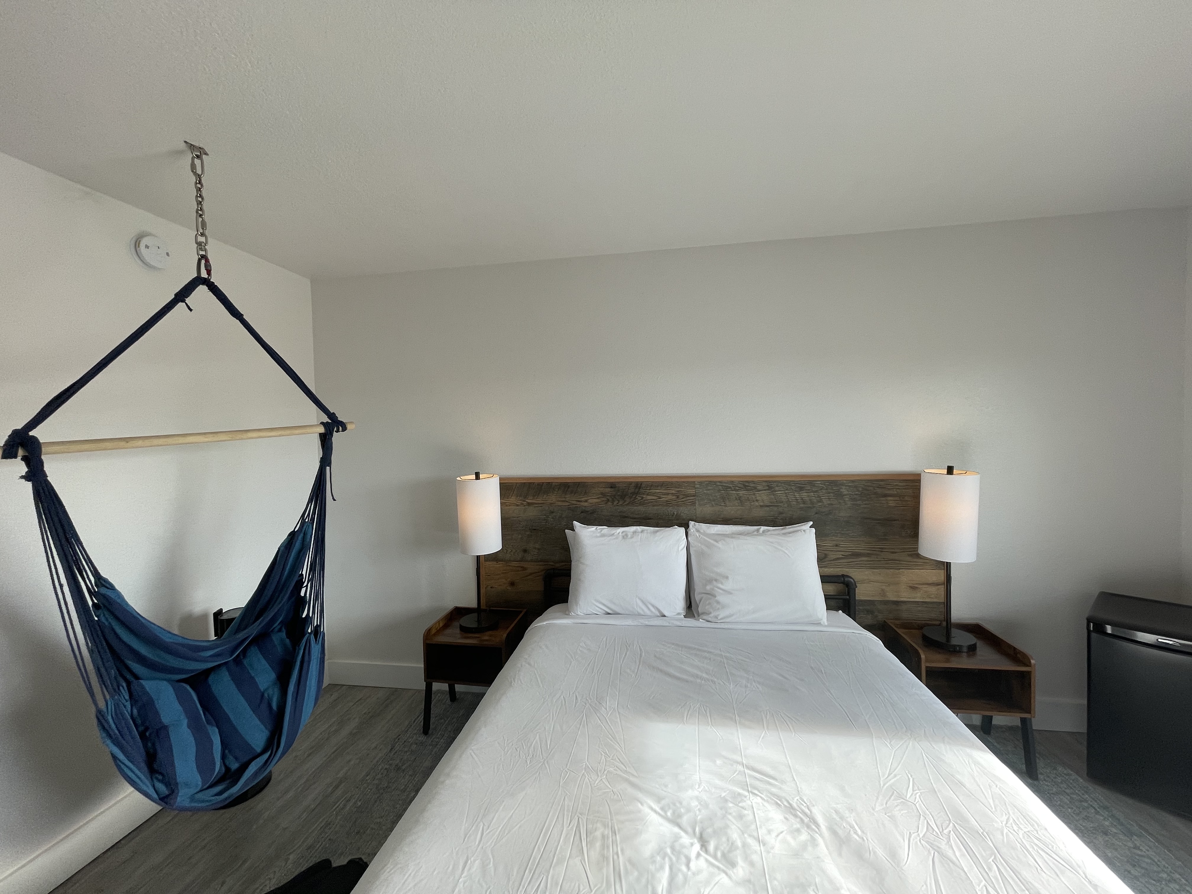 When I got to the hotel, I was immediately confronted by red flag number two: the front desk lady was…well…let’s say very laid back, and instead of a roomkey she handed me a post-it note with a door code on it together with a laminated piece of paper with numbers to call ‘in case of emergency.’ Hmmmm… So with that, I was shown my room at which point I encountered red flag number three, and with it all of my good-day vibes were shattered by what must be the most bizarre room decorating choice I have ever encountered in a hotel room. A word-to-the-wise for those of you whose job it is to decorate hotels: There is a fine line between acceptable, laid back furnishings in a hotel room and stuff that’s just creepy, and somewhere between the weird hammock sex-swing-thing and the salt crystal lamp in my room, this hotel crossed that line into the creepy zone.