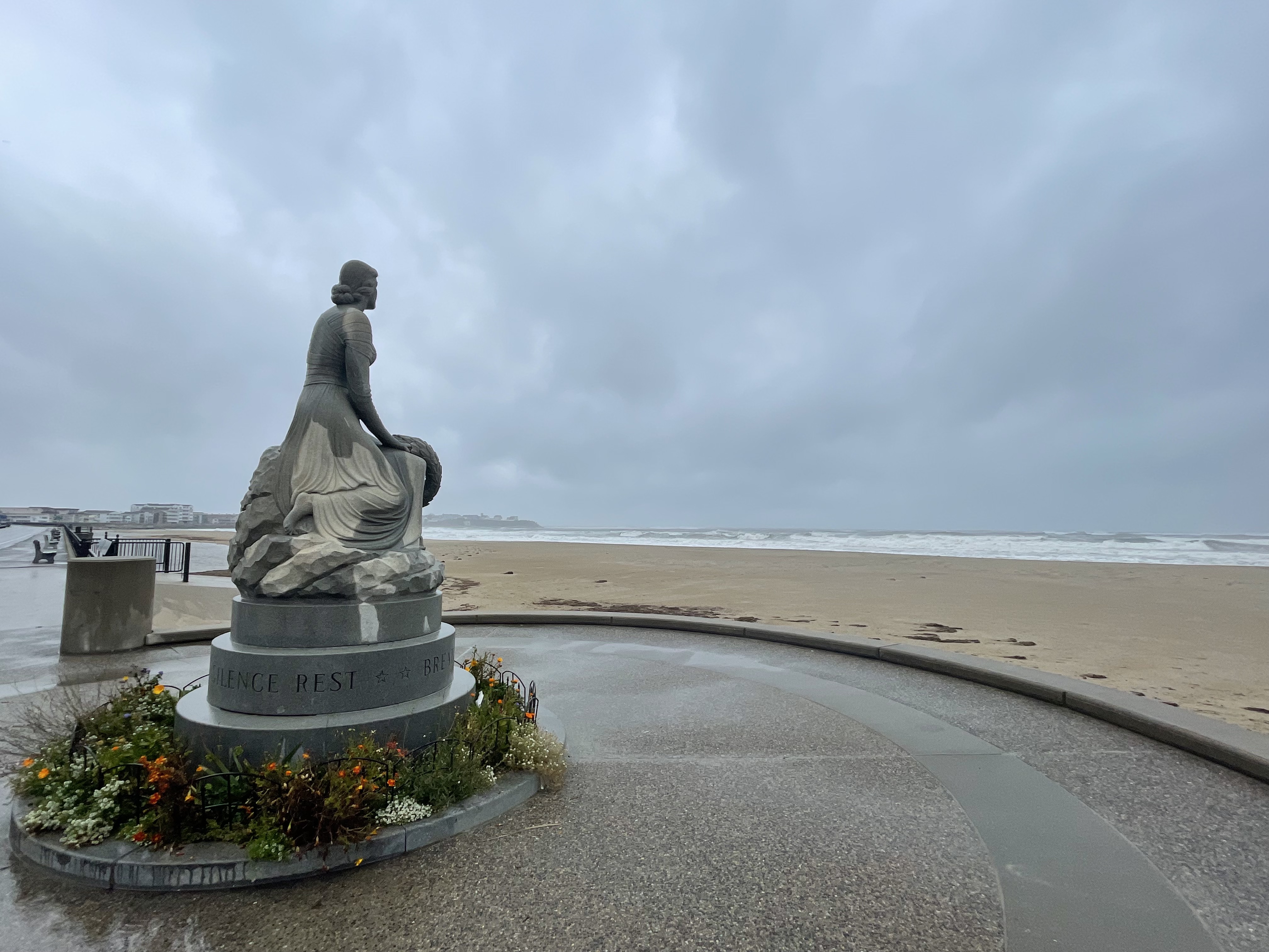 The Nor’Easter let up a bit this morning and it was time to drive to the New Hampshire coast. My first stop was Hampton Beach, which is a huge summer tourist destination for New Englanders. If you live New York or north on the East Coast, and don’t feel like going to the Jersey Shore for your summer beach vacation, then you’re probably heading here. The place is usually very crowded, but I was here in late October in the middle of a Nor’Easter, so it was pretty much empty.