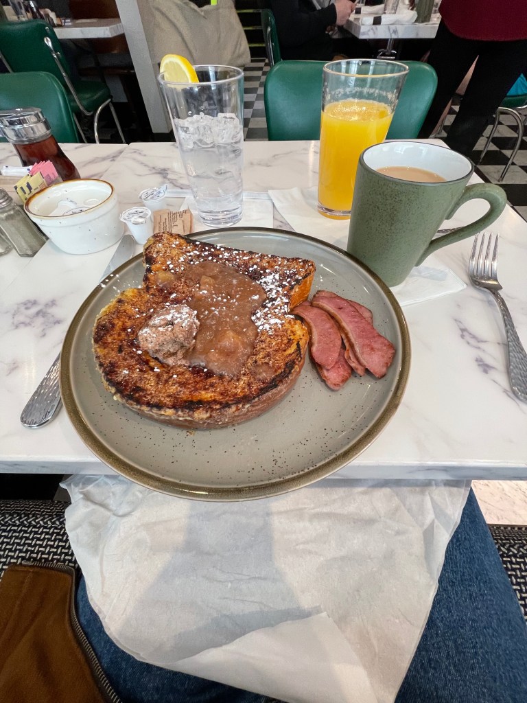This morning was a balmy 50 degrees, so I opted for a t-shirt and light jacket rather than my usual winter flair, and decided to Yelp some good restaurant spots in town so that I did not repeat the mistake from last night. I found a place called Best Cafe & Bar, which I must say really is one of the best cafes I’ve ever experienced. The second you walked inside, you felt that you were taken back in time, and the food, service, and hospitality were all fantastic. I ordered their creme brûlée French Toast and duck bacon and was not disappointed. Across the street from the diner was a large Catholic church and a school called St. John’s, which will feature again later in today’s story (the photo of St. John’s below is not mine).