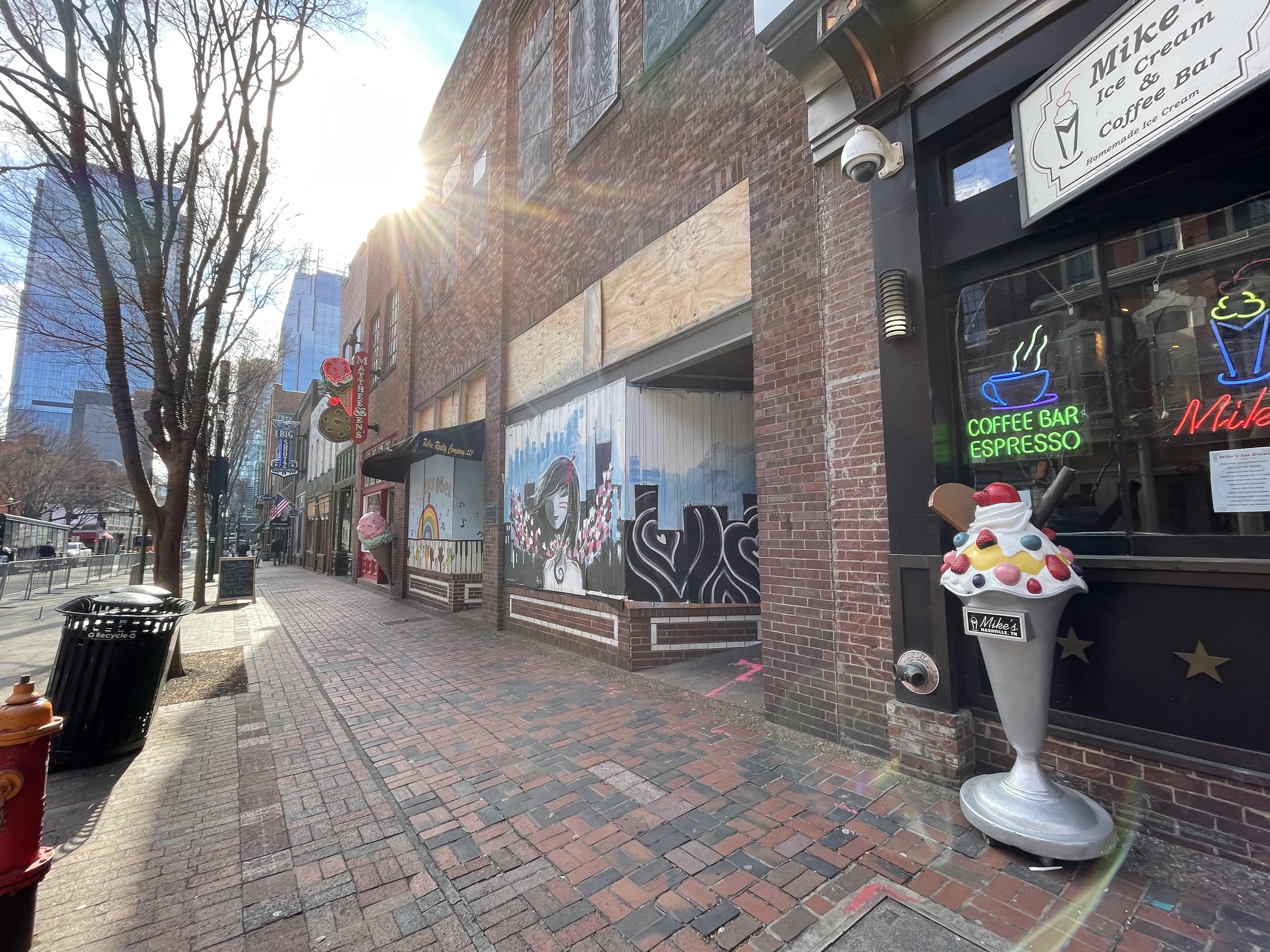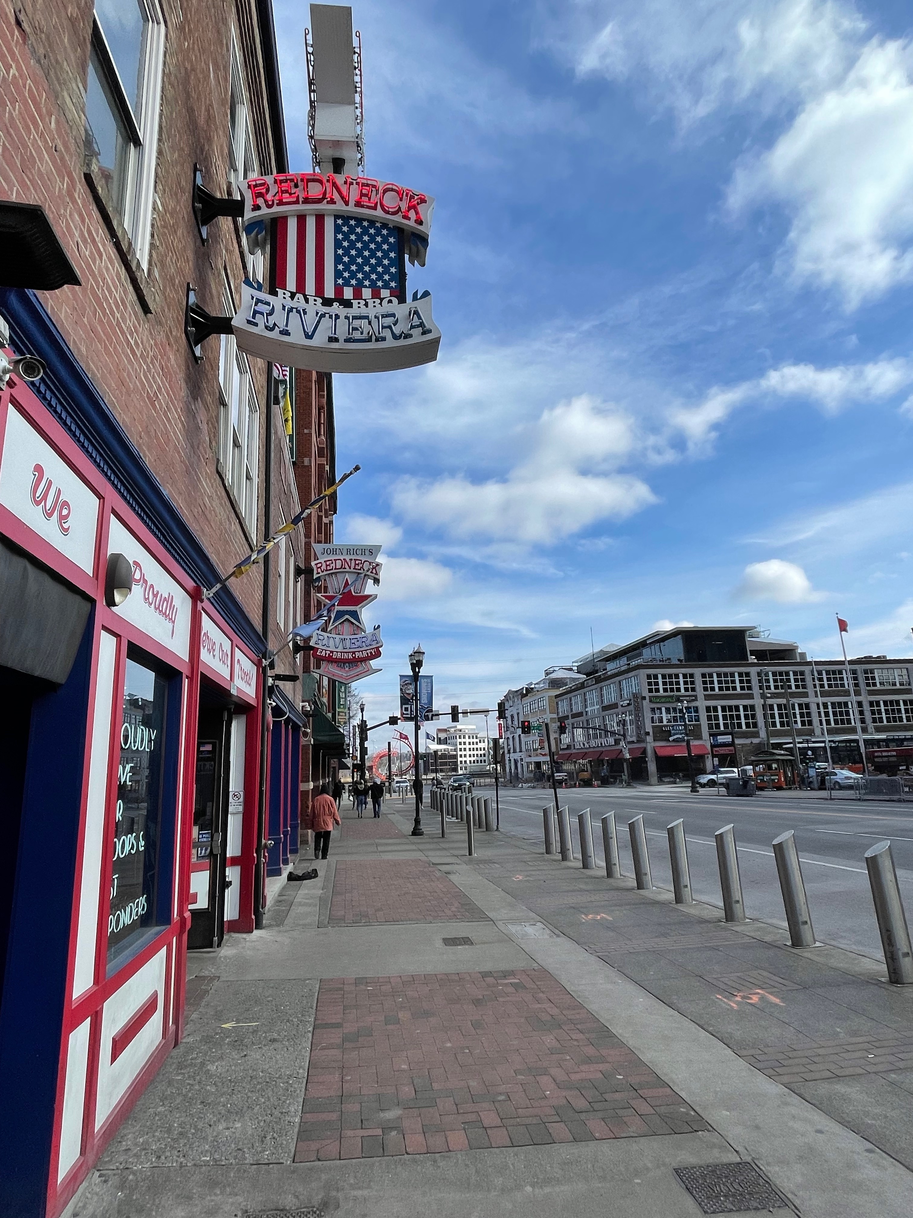 Howdy y’all from Music City! Don’t let the above, tranquil picture of the downtown strip fool you. A lot of the tourists are huddled inside bars and restaurants today because of the cold. But Nashville is a raucous, rowdy town!