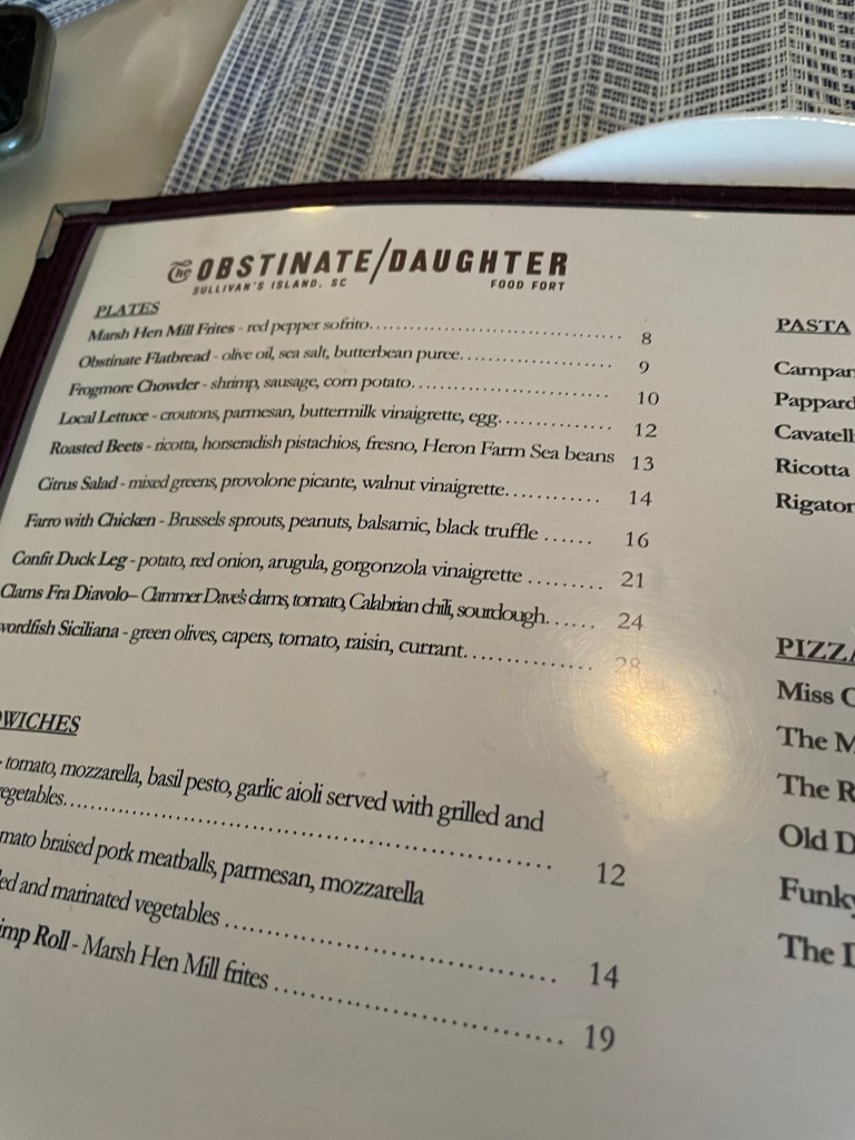 I finished my stay with the Curcio family on a high note yesterday. We took a trip to Sullivan’s Island, walked the beach, had lunch and gelato at a really great restaurant called the Obstinate Daughter (great name for a restaurant too), and then toured the USS Yorktown. I had a meatball sub at the Obstinate Daughter that was described to me as being “Nerf football size,” and, yeah, it really was that big and I don’t think I have been hungry for a full 24-hours now after eating it.