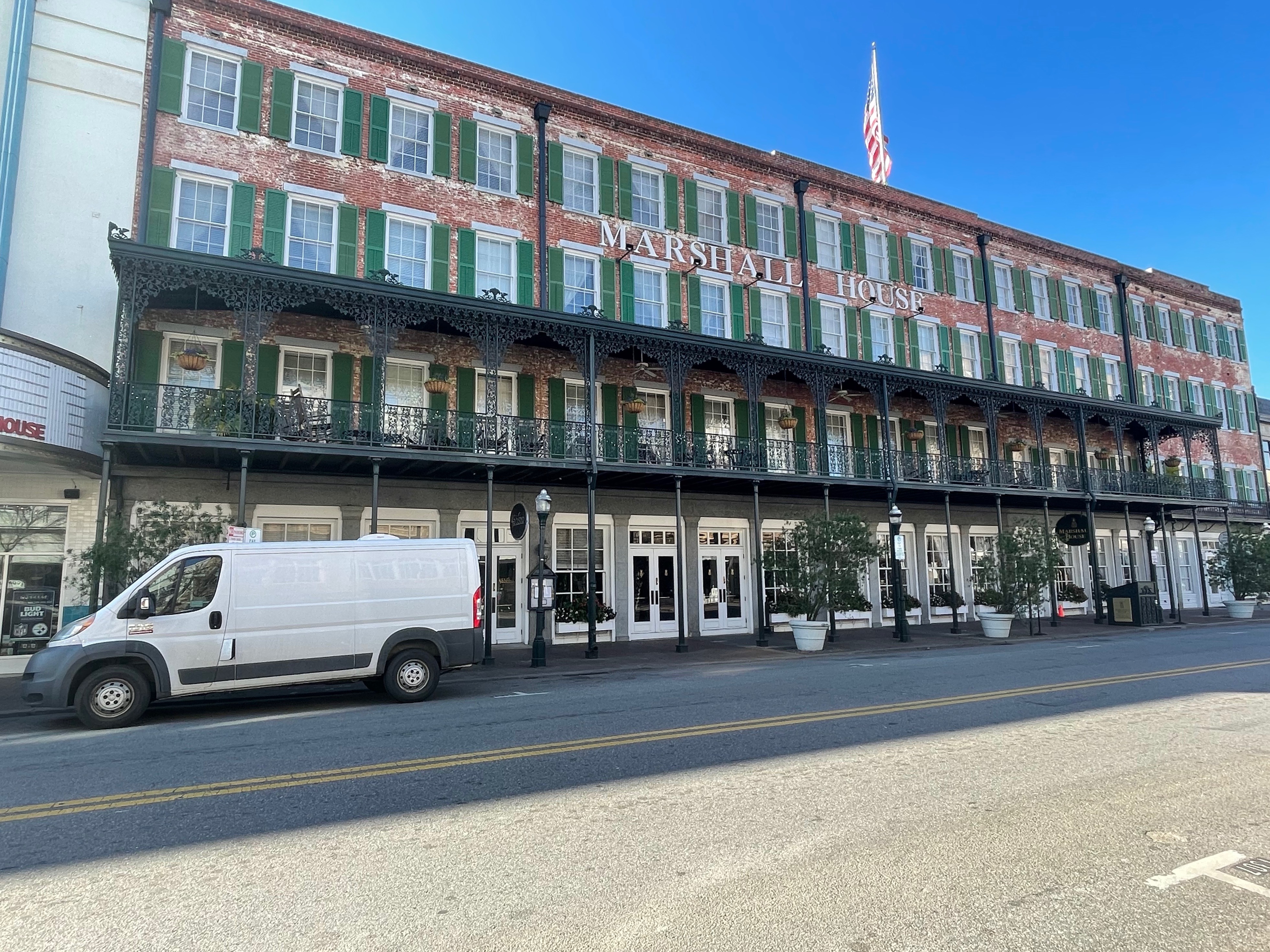 I am staying at the Marshall House here in Savannah, and once again history seems to be seeking me out even when I’m not looking for it. I chose this hotel solely because it looked pretty in photos and was conveniently located downtown. But, as I have learned, this is a very historic hotel. I don’t think I could have chose a more historic spot in Savannah.