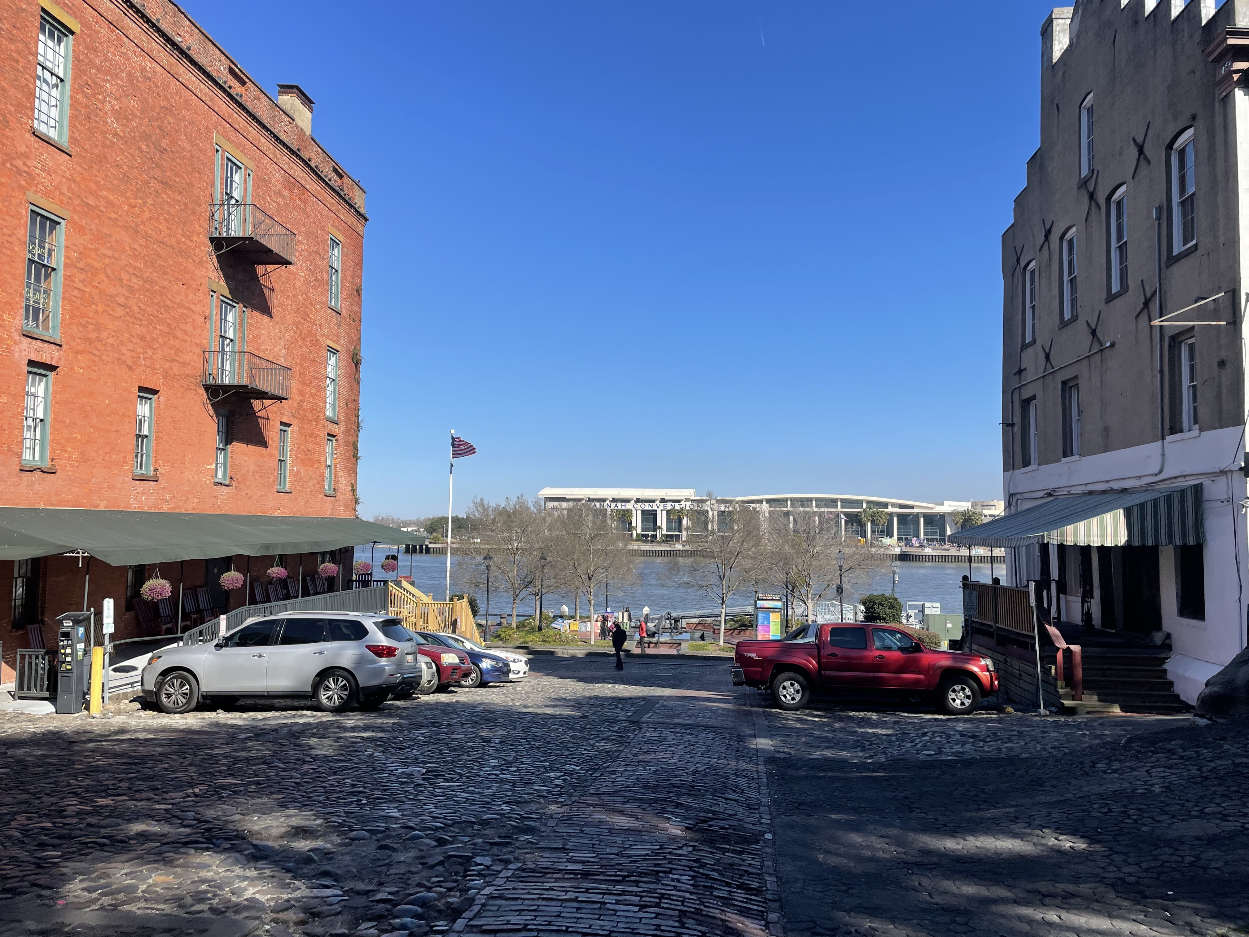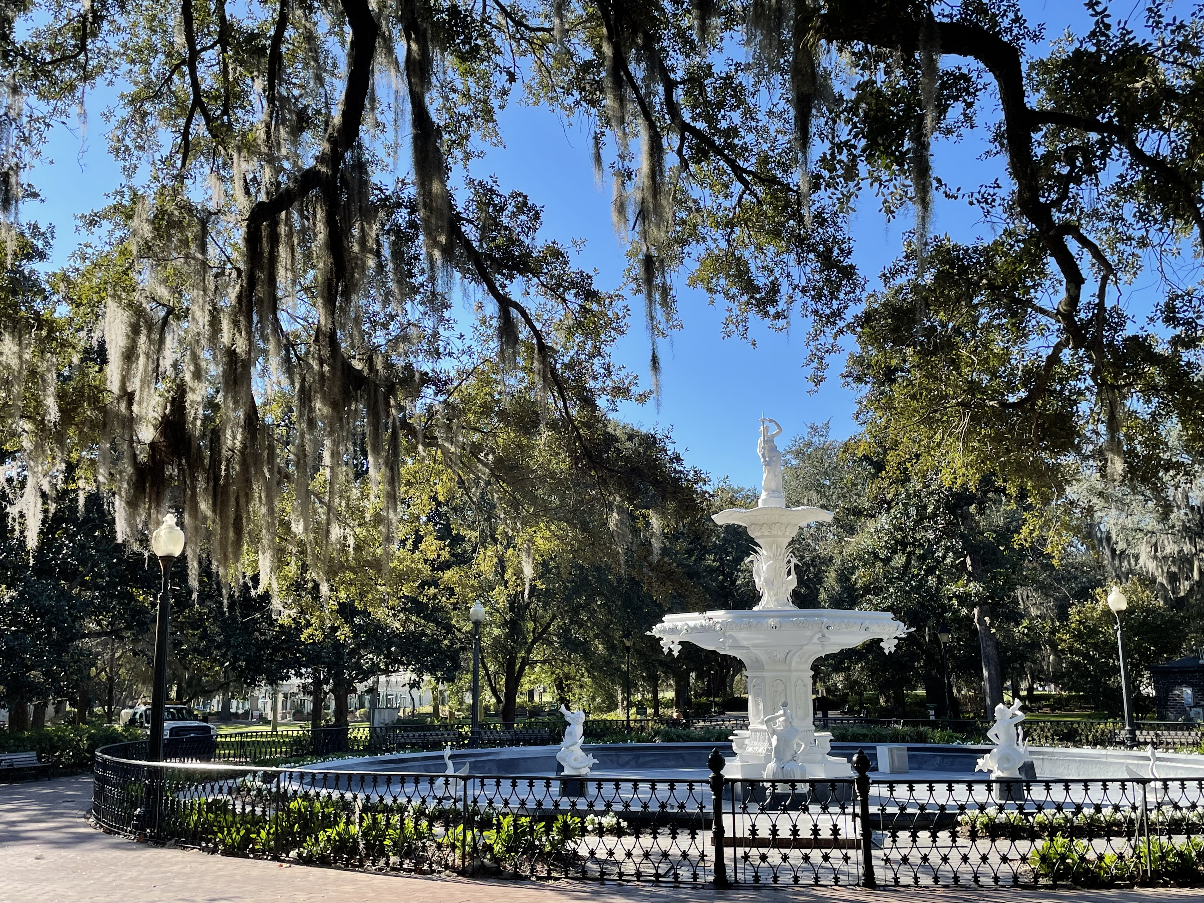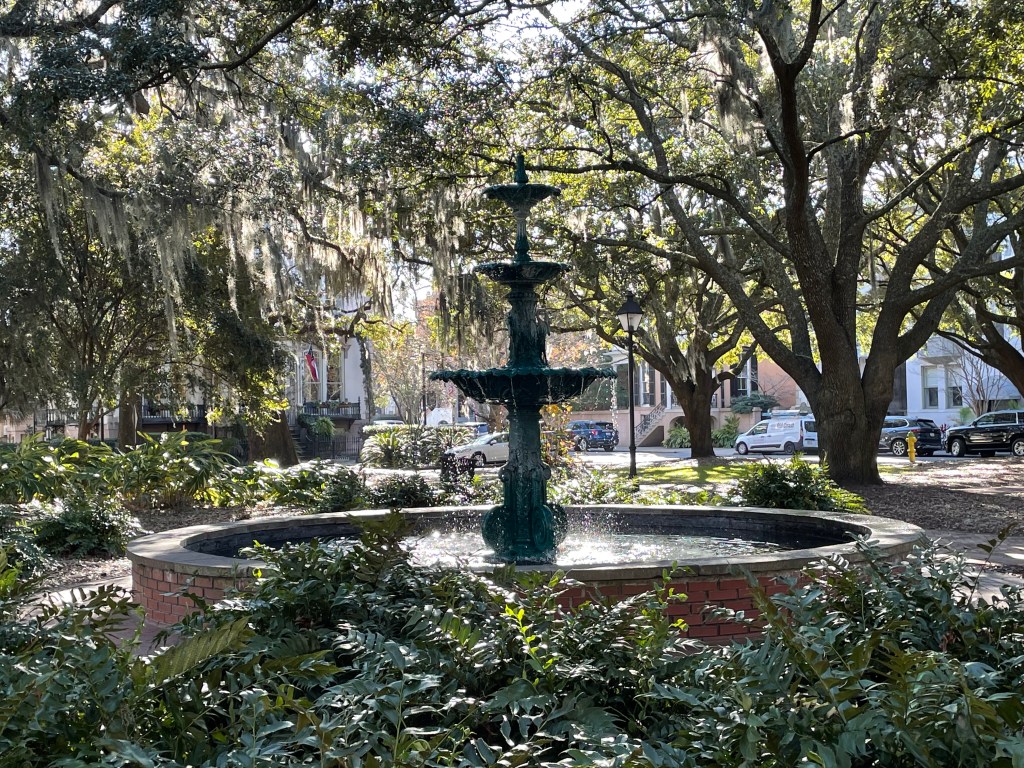 Leaving Charleston, I once again had to travel through a bunch of monotonous swamps. But as I approached Savannah, the landscape changed. The area around Savannah is not swampy. It is instead filled with rivers, marshes and grassy wetlands that reminded me of the wetlands between San Rafael and Vallejo in the North Bay back in California. Water fowl could be seen wandering the marshes and flying about all over. The town itself is nestled against the Savannah River, with a long river walk along the river’s shore. Huge river boats and shipping vessels busied the waters.