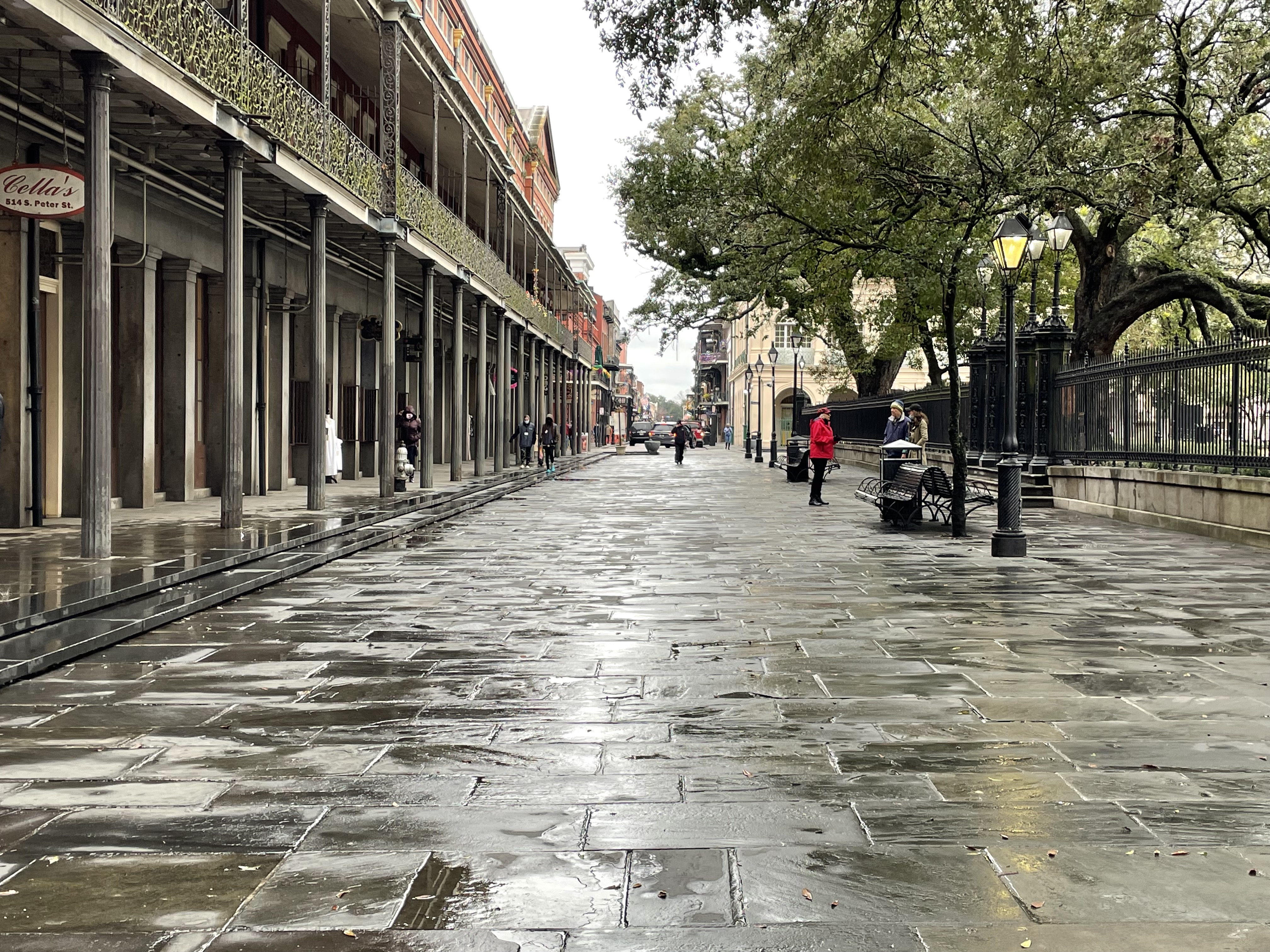 Right now it is a rainy, cold time to be in this historic city (it’s about 30 degrees outside with windchill, and icy wetness covers everything). A lot of the famous, renown restaurants (including Emeril’s restaurant, Nola) are closed due to the pandemic lockdowns and lack of help, and the insane number of tourists within the city are all crammed into and jockeying for space in the few places that remain open. The streets are slick and grimy, full of excrement and substances of unknown origin, and many of the people wandering the streets for some reason look like they are practicing for an audition in the next Mad Max movie. Yeah…if you are looking for a fun, relaxing getaway in 2022, you might wanna look someplace other than New Orleans.