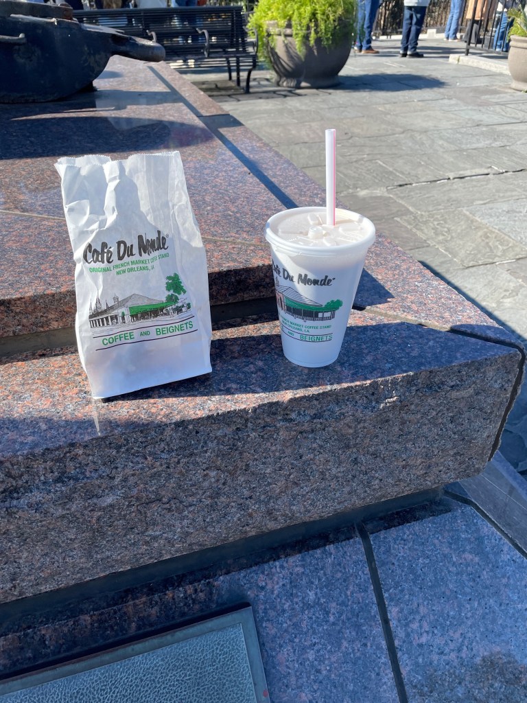 And sure, I had to wait 30 minutes in a line for beignets this morning (and no, they were not even close to being as good as the Cafe Beignet Royal beignets that I had yesterday), but at least I got to experience the authentic, original Cafe du Monde beignets and chicory coffee for which the city is known.