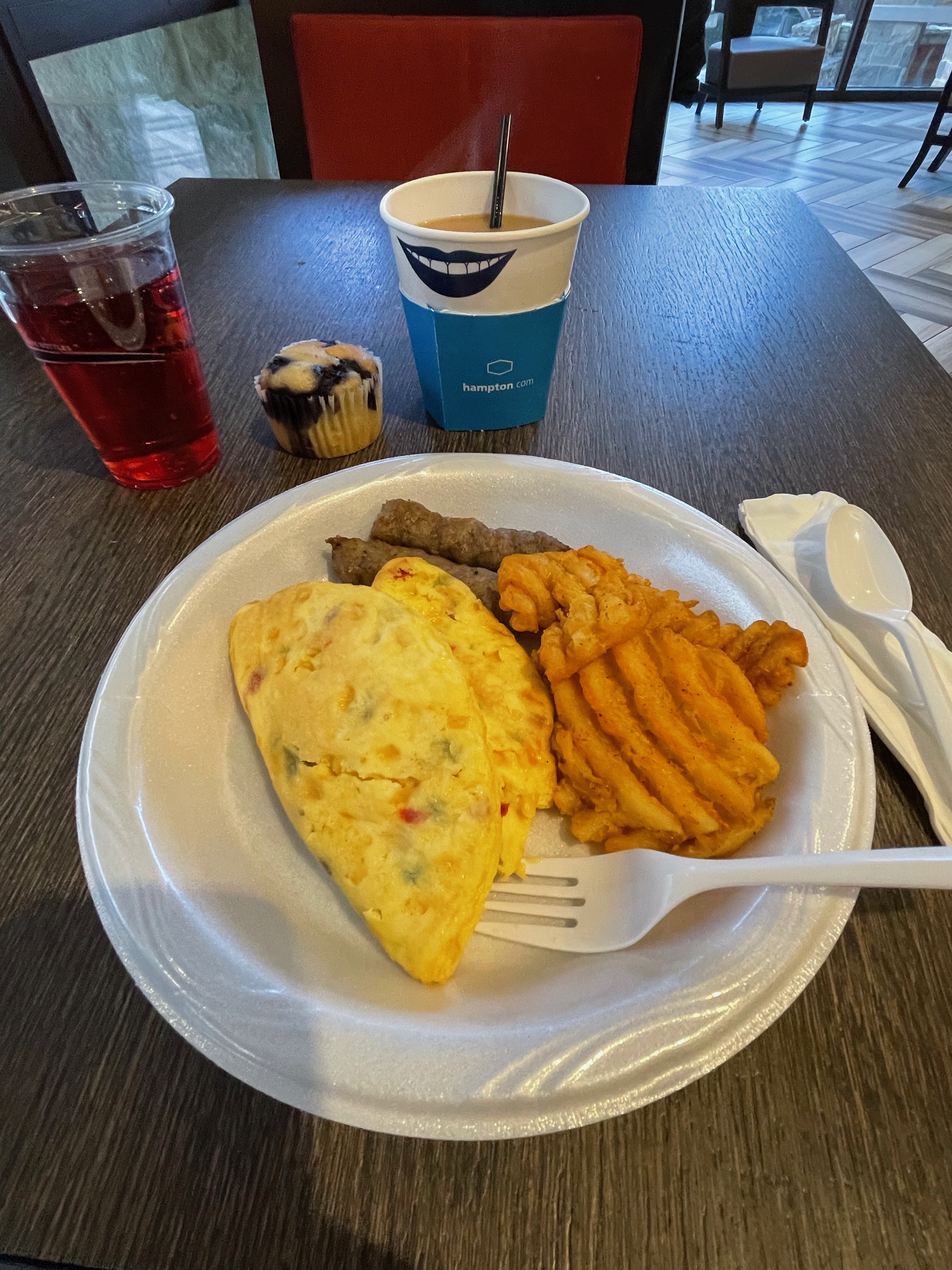 My day started with something that has somehow eluded me this entire trip, but boy did it make me happy. I almost cried tears of joy: a free, continental breakfast! I did not need to go out and roam the urban wilds searching for food this morning! Hallelujah!