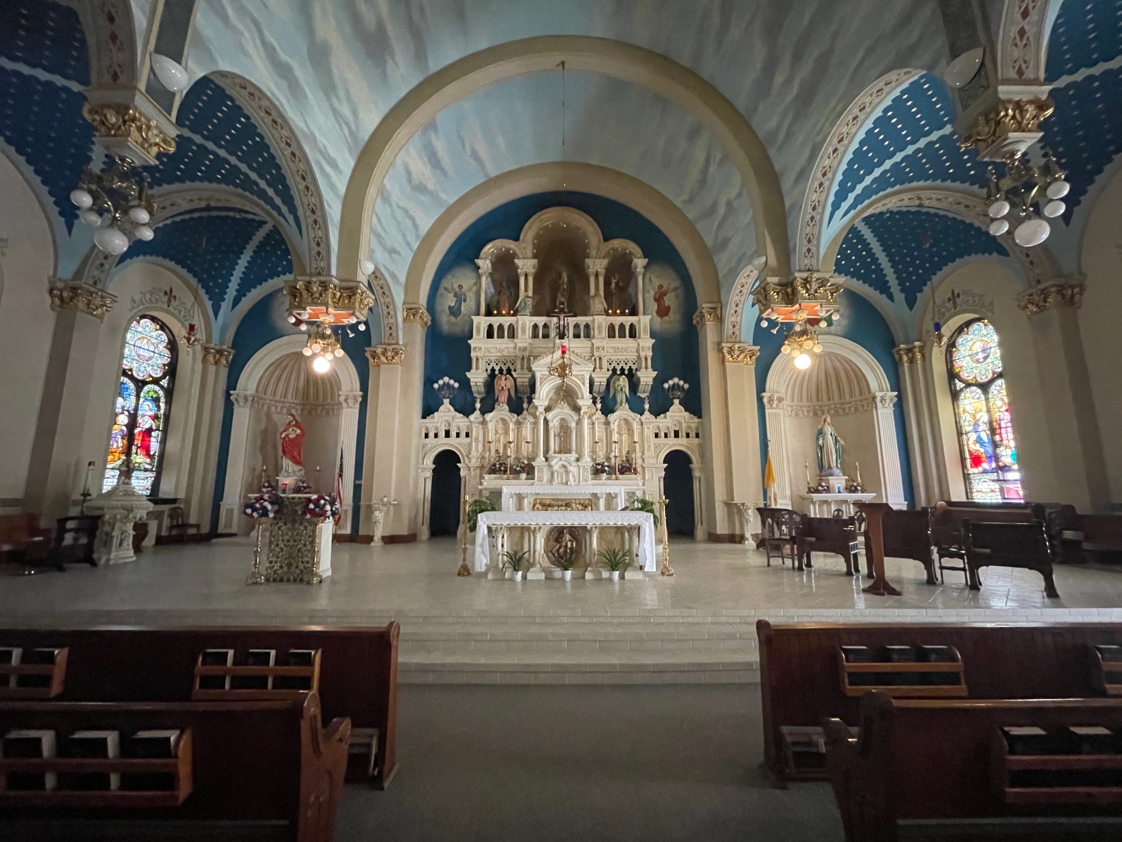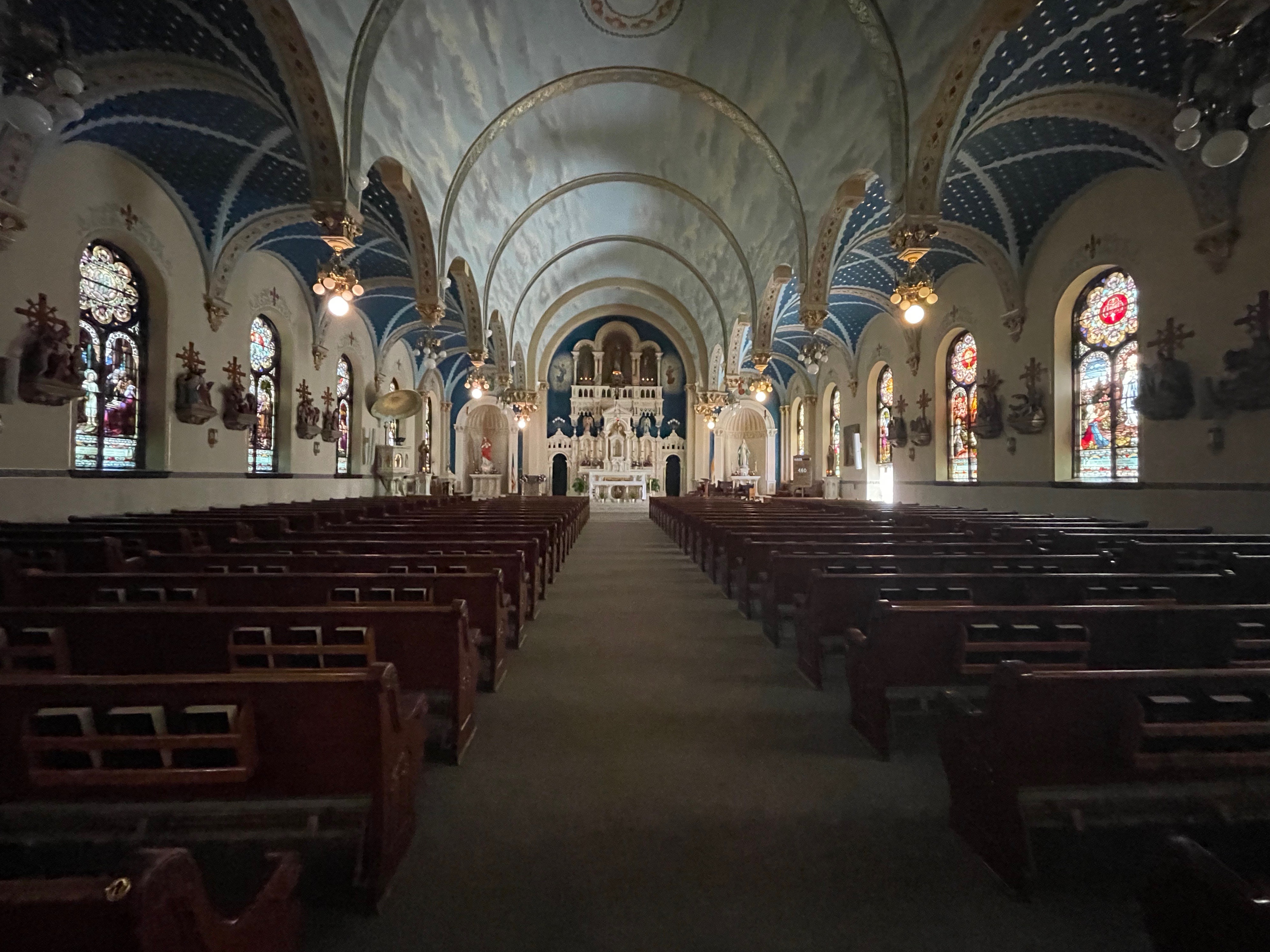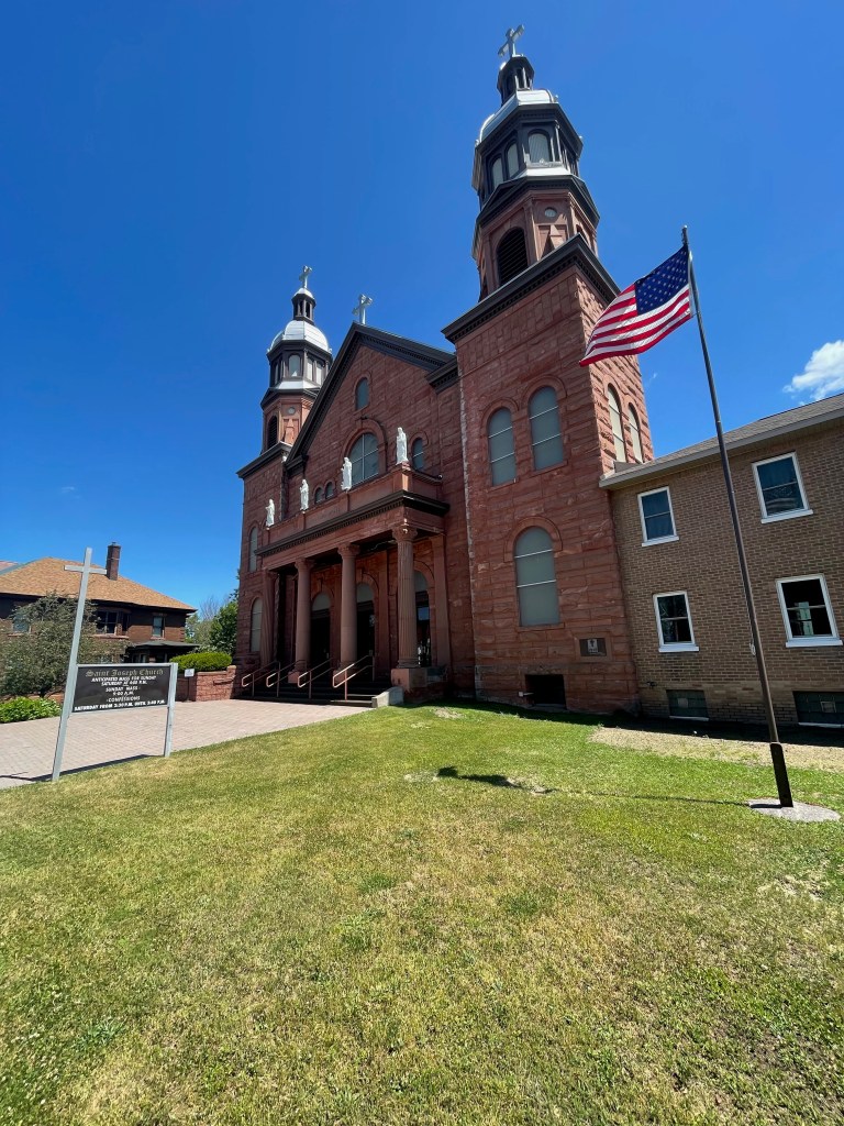 That was day one! Day two started with Deacon Jeremiah heading off to work and me heading off to Mass at St. Paul’s in Calumet. St. Paul’s is one of the most beautiful parishes in our Diocese and clearly a place that was designed with a whole bunch of copper money back in the day. Its exterior also looked SO familiar – it was almost identical to Sacred Heart back in Red Bluff.
