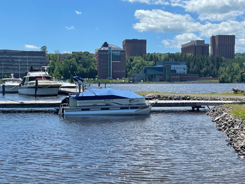 My journey to the Keweenaw started in the Houghton/Hancock area. Houghton and Hancock are two towns (really just one town separated by a canal), and they are located right in the middle of the Keweenaw. The towns are home to Michigan Tech and Finlandia University, which add a whole lot of student population to the area and give the place a feeling that in many ways is even more refined and urban than Marquette. It is also home to many nice houses and vacation rentals that are nestled in the valley and that have their boats parked in docks on the canal. The canal separating the towns is called the Portage Canal, which provides a shortcut for ships that do not want to go all the way around the Keweenaw when navigating Lake Superior. Anyways, the area looks like this: