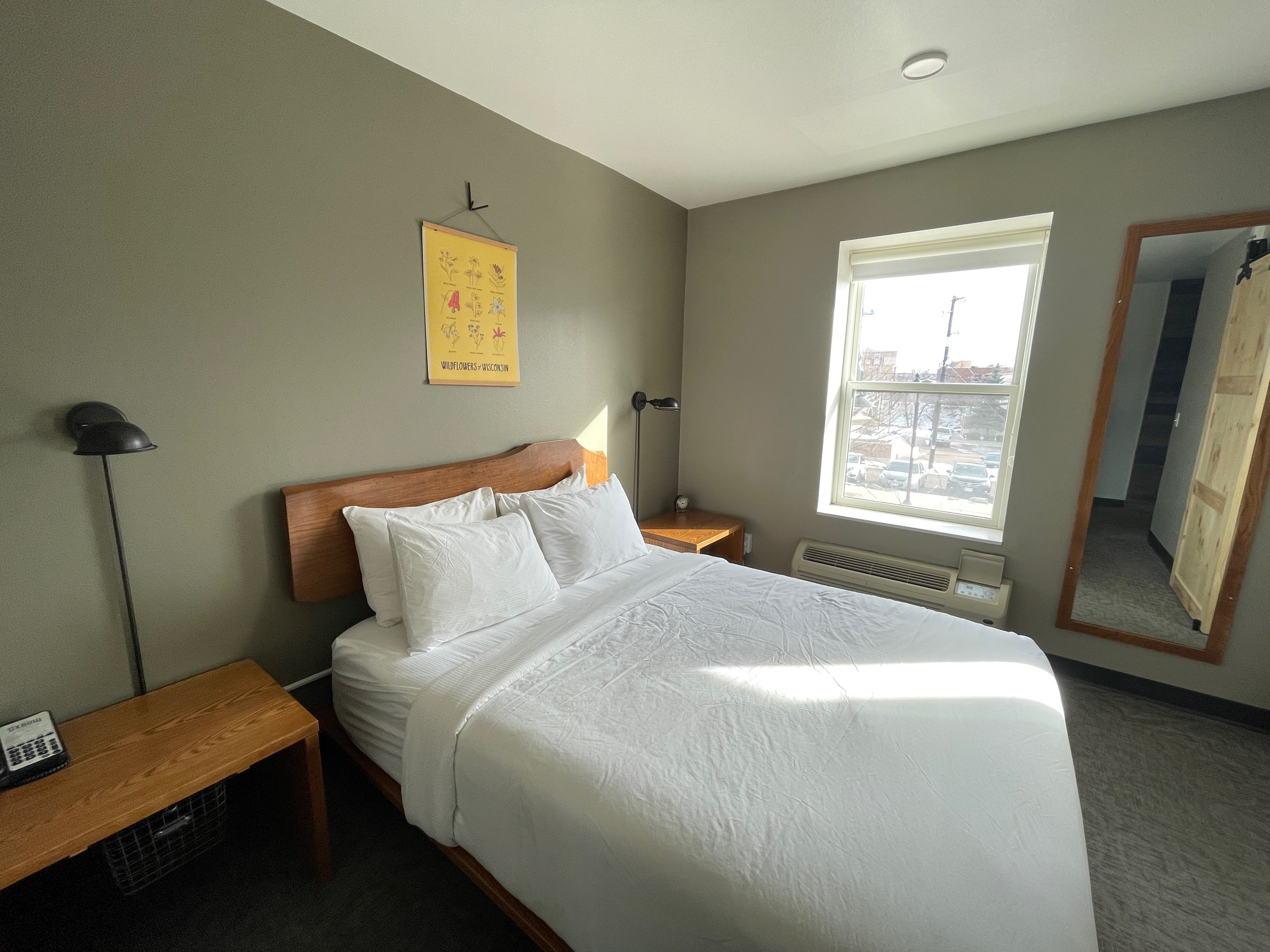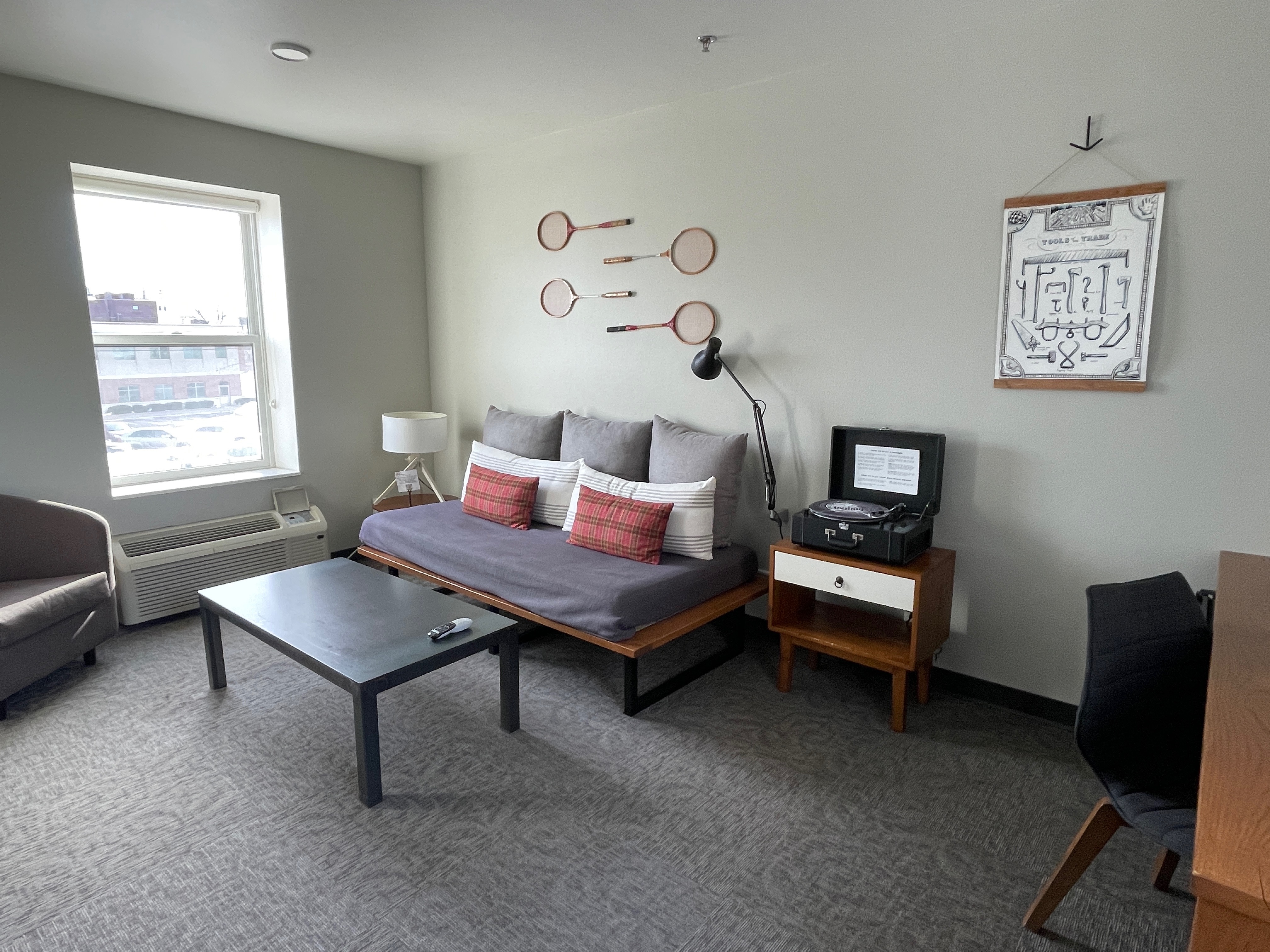 While that should give you my motivation for coming to Eau Claire, it still doesn’t fully explain why I’m here. The answer is pretty typical in adult, professional life. I’ve been working hard lately – a lot of projects and a ton of meetings. In fact, since getting back to Marquette from my grandfather’s funeral, I don’t think that a day has gone by on the calendar where I’m not buried in meetings or otherwise doing my best to get organized on various projects. A short vacation to recharge was needed, and scouring a map trying to locate an escape about 4-5 hours away from home, that thought of Eau Claire came back to my mind. So, I found myself a comfortable (but unfortunately also kind of hipstery) hotel to stay at downtown, and now I plan to just unplug here for a few days – from email, from calendars, from computer screens, from everything. There’s nothing on the agenda for the next few days but to hang out in my hotel room (which is complete with a vinyl player), explore the area, hopefully take a few nice pictures, enjoy a few good restaurants, update the blog, and catch up on sleep. Sleep especially is sounding wonderful right about now (even though it’s only 7 pm). My insomnia has been terrible lately.