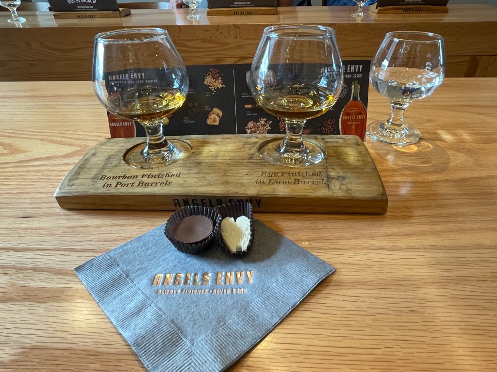 My last trip on the Bourbon Trail occurred in 2021. At that time, I went to Woodford Reserve and Maker’s Mark, and it’s definitely worth reading the blog entry from that trip. This time around, I toured Angel’s Envy and the Kentucky Artisan Distillery. These two distilleries could not have been more different from one another, and yet each offered its own amazing experience. It also taught me a lot about the sort of people who end up in the bourbon world. So without further ado, let’s take a trip once again along the Bourbon Trail!