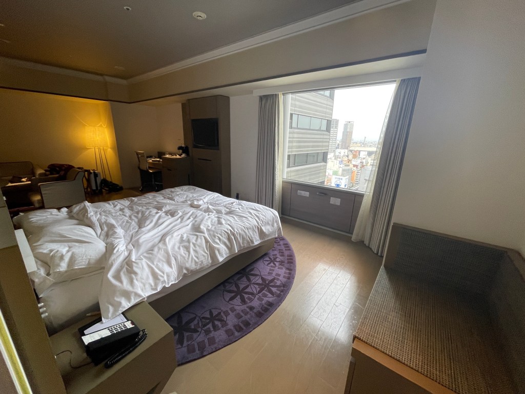 For our second day in Japan, my sister, brother-in-law, and I enjoyed a great breakfast at our hotel in Osaka before heading out to explore. Our hotel is phenomenal, by the way! An attorney acquaintance of mine recommended it to me a few months ago, and I’m so glad that we went with the recommendation. The hotel is classy, right in the heart of Osaka, and literally built on top of an Osaka metro stop making navigating the train networks a breeze. Here are some shots of my room and our breakfast this morning from the top floor restaurant and bar.