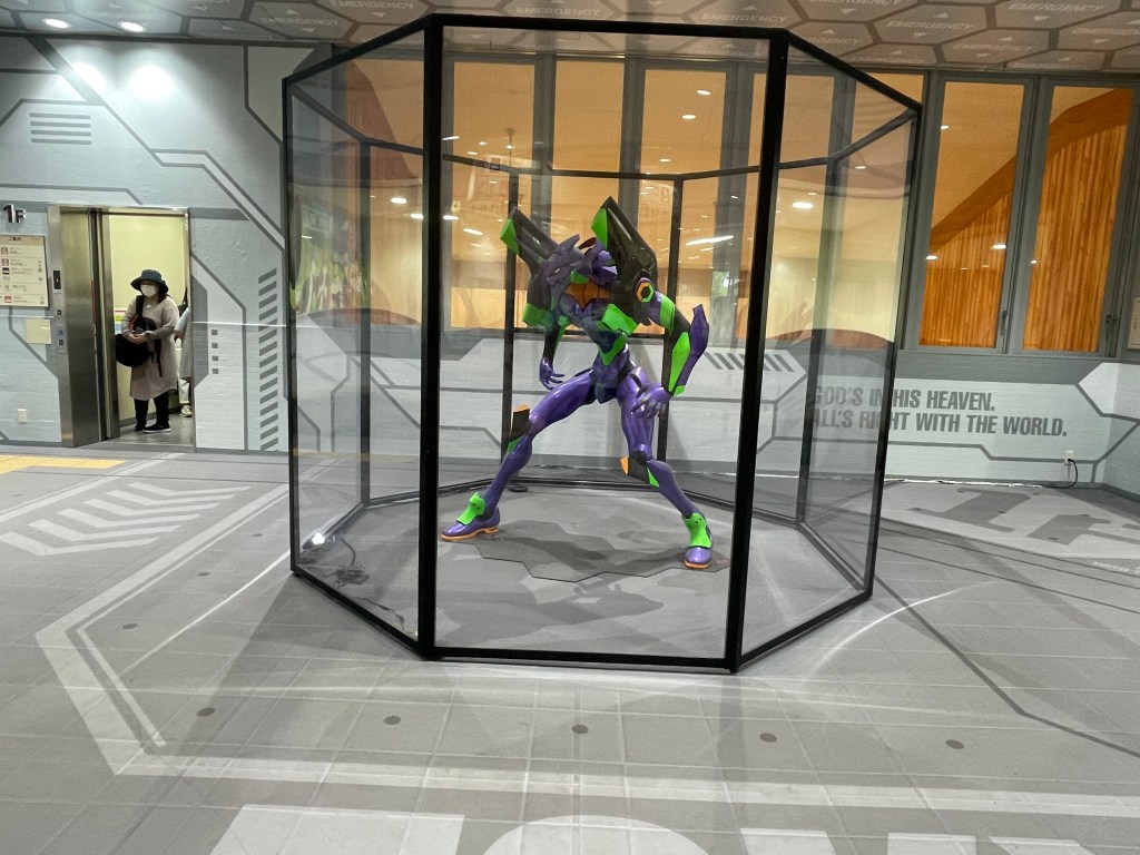 This morning we left Osaka and took the Shinkansen up to Hakone, which is an onsen town in the Japanese countryside. The town is near an iconic lake called Lake Ashi, and on clear days the lake offers incredible, expansive views of Mt. Fuji. The town is also famous in the anime world as being the home of “Tokyo-3,” a fictional “new” Tokyo city that humans are working to build following the destruction of the original Tokyo and much of the world by alien forces, in the famous and iconic anime known as Neon Evangelion Genesis. Evangelion is one of my favorite anime shows. If you’ve never seen it before, check it out! It’s on Netflix. Anyways, a statue referencing the Evangelion connection greets you in the town.