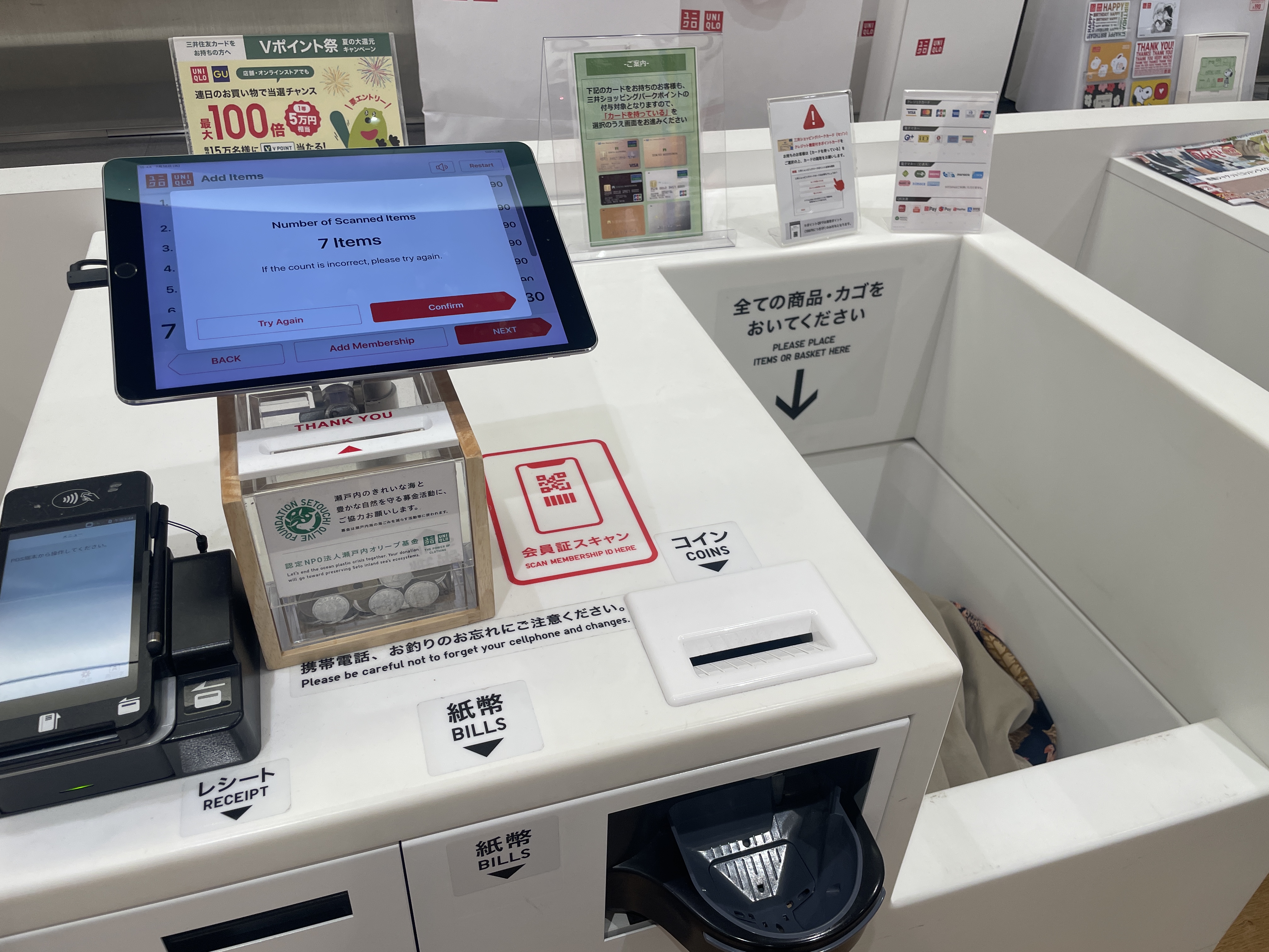 Also, one of the clothing stores that I stopped at was a UniQlo (think Japanese Gap) in Tokyo. It was awesome because (a) it did cater to my size, and had such a wide-variety of clever, artsy clothes; and (b) its technology blew my mind. When it came time for me to buy my clothes, I approached what looked like a self-check out machine. It advised to place items in a little box area which I assumed I’d then scan the clothes from while moving over to a bag. But instead, the second I dropped the stack of clothes into the box, they were automatically rang up. The entire stack of clothes, instantaneously, catalogued and rang up with my total to pay. It was crazzyyyyyyy! I’d never seen technology like it before, and I’m wondering why here in the States we aren’t using that technology…everywhere. Here’s what it looked like (you can see I had just dropped the clothes into the box and the machine was now instantaneously telling me how many items I dropped into the box and their cost):