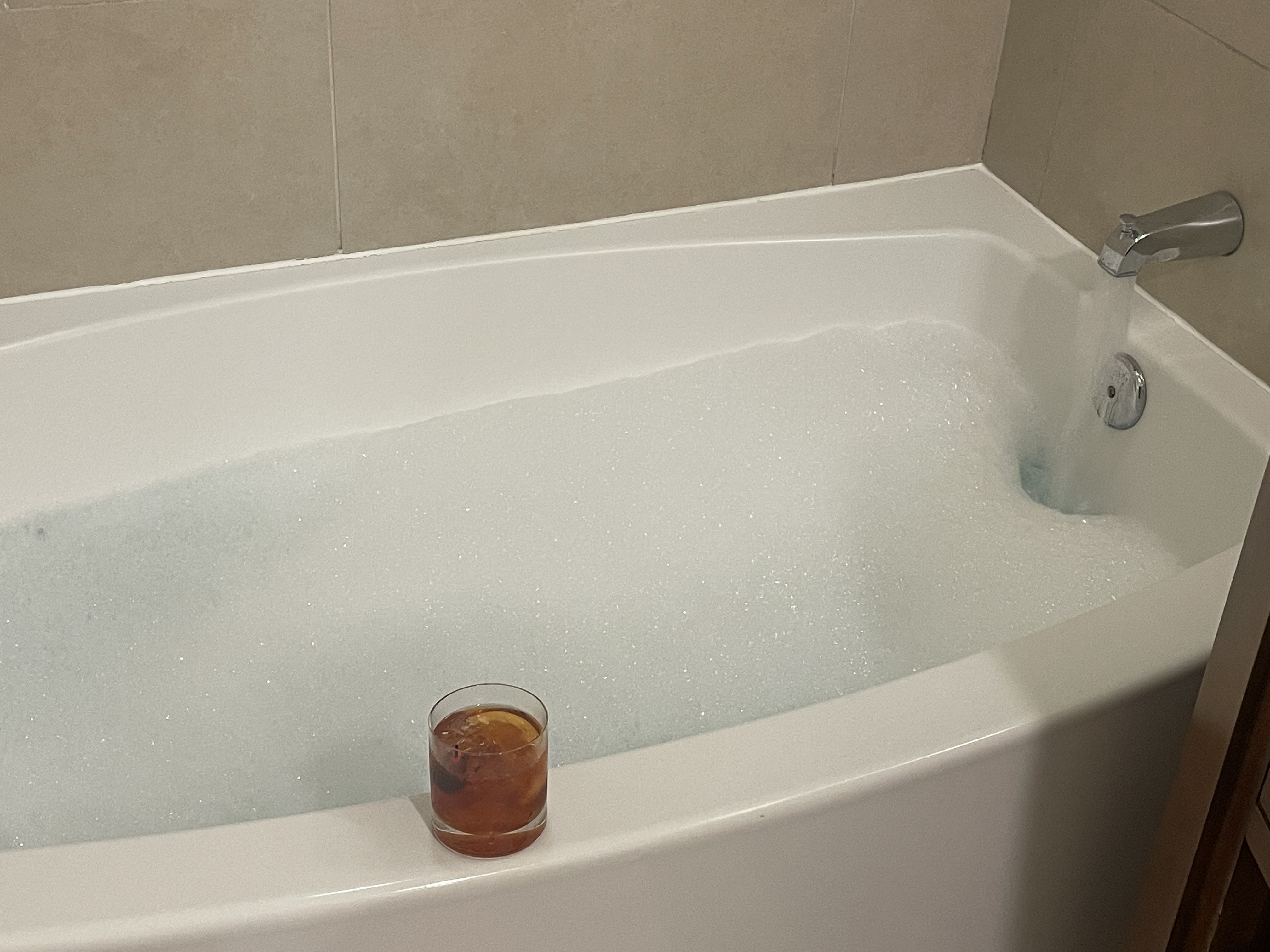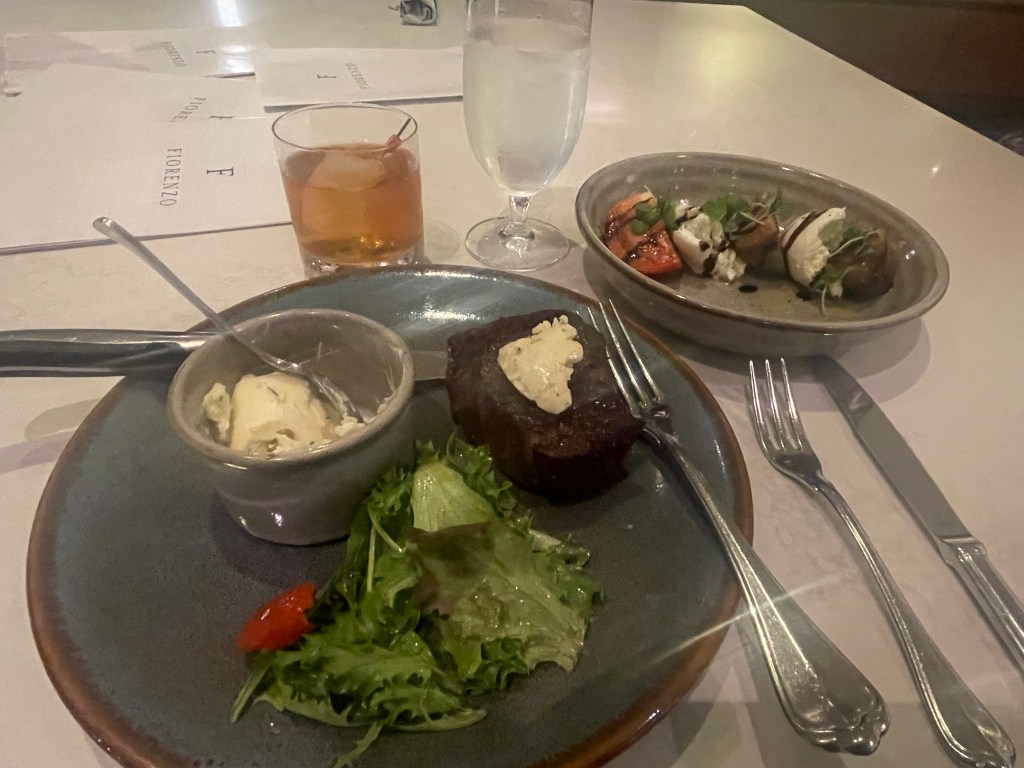 I followed my humid morning workouts each day by showering, donning a suit, and attending the second morning session, followed by mass, the afternoon sessions, and then dinner (as an aside – my sister and brother-in-law have kind of become food snobs since moving to Florida, and I’m starting to see why – the food has gone so hard here! Everything has been delicious. I love the restaurants and food here in Florida!). Following meetings and dinner, I would skip the crowds heading out for the night and instead head to the hotel bar, order for myself an Angel’s Envy old fashioned, and bring it back to my room where I’d take a relaxing nighttime bath (taking baths being the best new habit of mine following my time in Japan) while sipping my drink. During each bath, I listened to lofi and made certain to reach out to the woman that I referenced in my last blog entry, to catch up with her and wish her a goodnight. Honestly…it was probably the best daily routine that I could create, and I wish that humid morning workouts, midday masses, great dinners, hotel cocktails, nighttime baths, and goodnight wishes could just become a permanent fixture in my life.